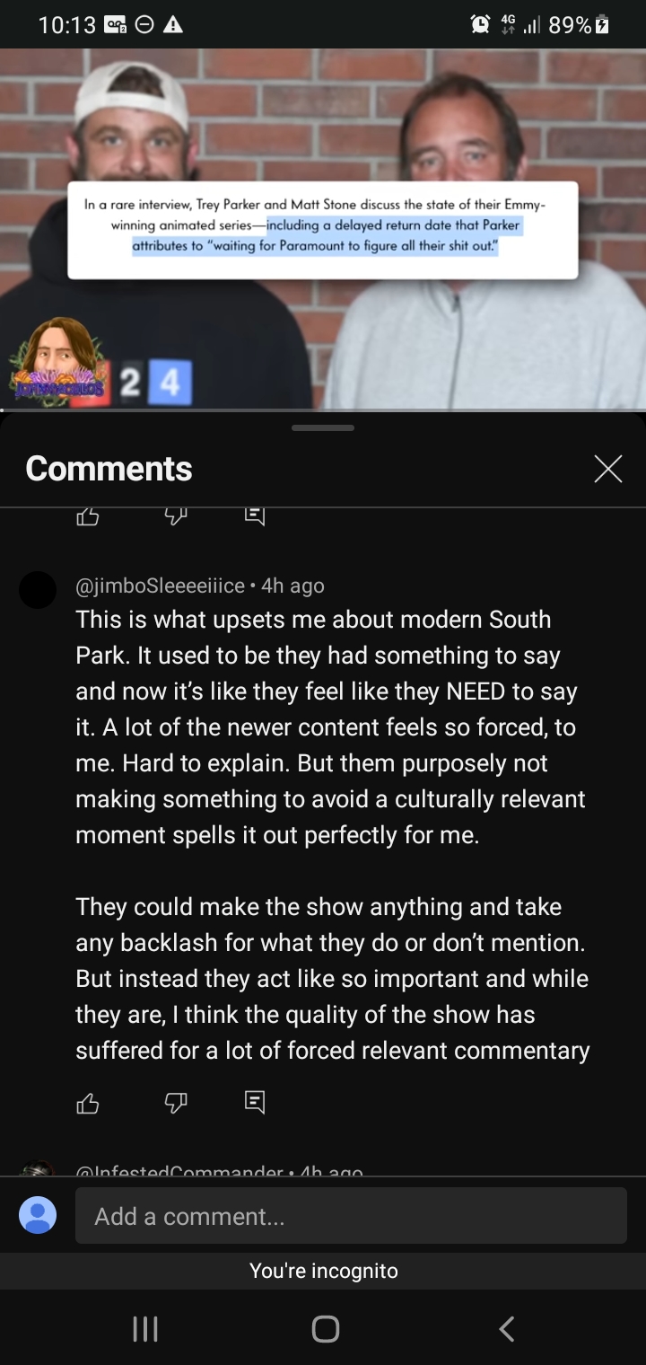 You glad, Matt and Trey?