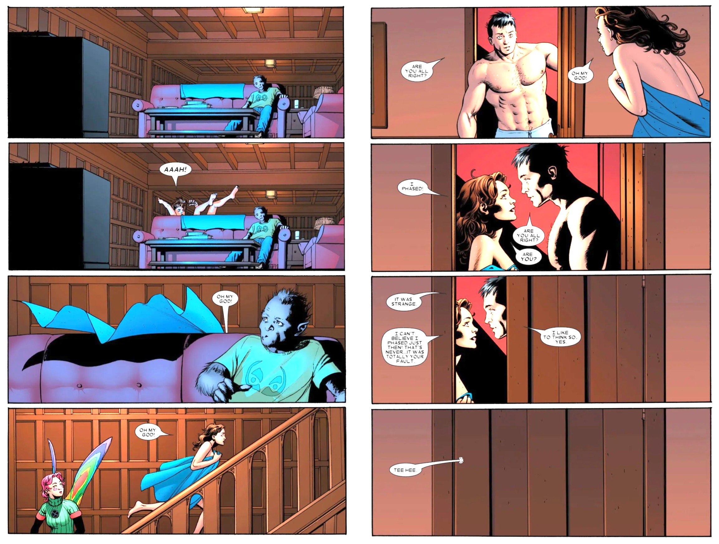 >>151966924I don't want to see any faggots, but lesbians are fine. I like the idea that, canonically, Kitty may have tried to fuck Colossus and Magik at the same time.