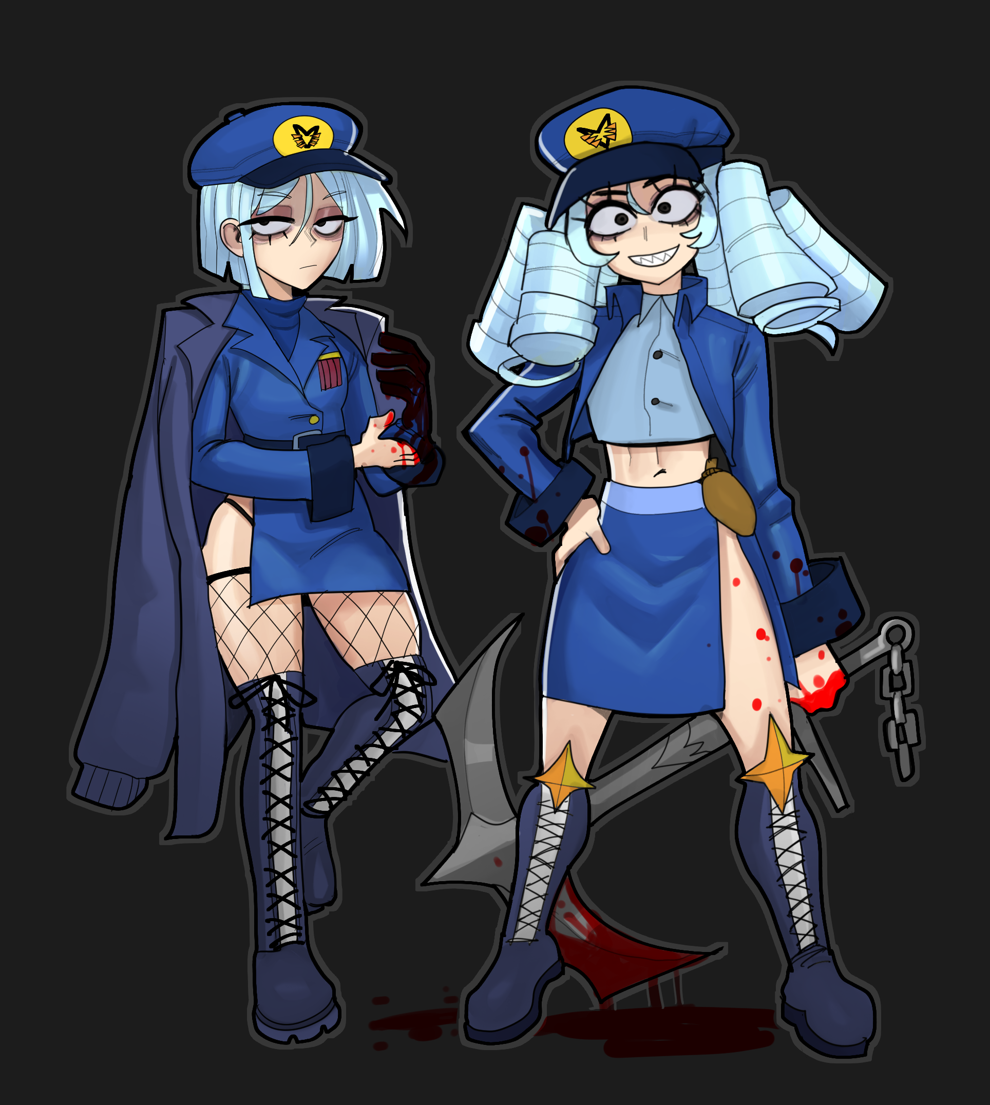 >>152039317>>152038255>>152039294Lore for anyone interested in twins>Name:Delmare Weiss>Magical Name: Tidal Eclipse Delmare>Affiliation:Project Stardust>Color Theme:Seafoam & Midnight Navy>Rank:Enforcer-Class (High-Tier Operative)>Name:Selcia Weiss>Magical Name: Lunar Abyss Selcia>Affiliation:Project Stardust>Color Theme: Pastel Ice Blue & Deep Ocean Black>Rank: Celestial Commander (Field leader)>Selcia is a serious girl, this is why for her age she's already been promoted>Delmare is perfectly comfortable where she is, she works best as a enforcer and loves being on the front lines.>Selcia and Delmare are twins but are fundamental opposites>Selcia is very cold, stern and quiet.>But she's not the type to go unnoticed many fear her harsh apathetic gaze. It's as if she irradiates a miasma of frost>She can be quite cruel but never the type to go draw things out or go overboard.>Delmare is quite the opposite many around the base love her. >She's a sweet girl that is always smiling and cheery never in a bad mood unlike her sister.>Though it's until you realize she keeps that same energy in battle as well. Battle field covered in bodies and viscera she can be smiling ear to ear.>Delmare can say the cutest and sweetest things with her soft honey like voice. Then something that would make a veteran want to vomit, in that same sweet tune.>Delmare is a battle junkie, loving everything about the battle field. She takes the good with the bad>Selcia finds it hard to contain her baby sister's murder lust during operations.>They were made by the GSA, to be perfected military might>These two are quite the force to be reckoned with>>152039330>>152039489Nice also HA I actually made mine before these two, I WIN!!! But all jokes aside hope boy is yuri and girl is boy love, fits the realistic thing. But then ironically they sadly can't have relationship they love so muchImagine it using your twin to live through fantasy because she or he looks like you