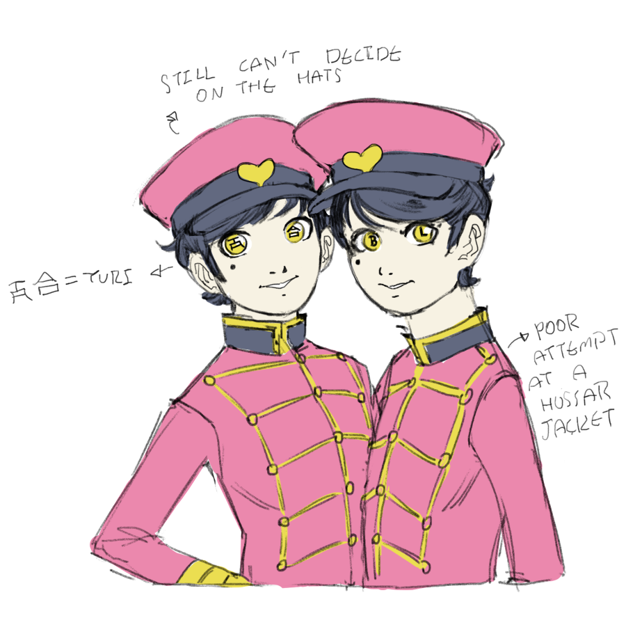 >>152041537>any lore yet?They are the Slash Sergeants, Sharpshipper's top cronies. They individually lead the Yaoi Corps and the Yuri Corps on operations. Despite being twins they don't get along at all, constantly undermining the other or forcing them into same-sex situations (see Doky and the Fag Bag). Sharpshipper keeps them moderately in line by threatening to make them fall for each other.They each wield a pistol as their signature weapon: Heartache and Heartbreak. By combining the two they can perform their ultimate attack... but no one has ever seen it because they hate working together.