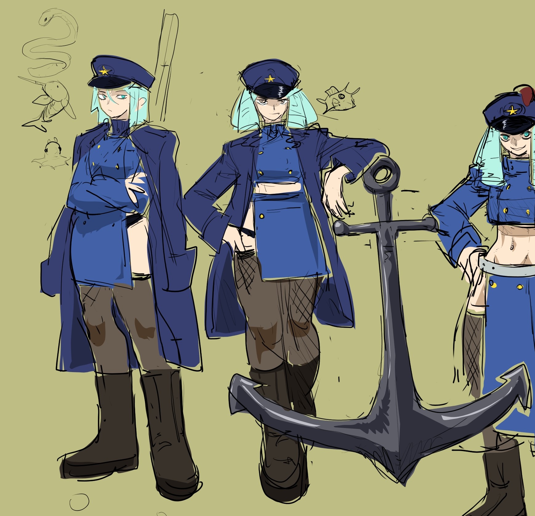 >>152004894The anchor emblem on her cap made me think of her with a giant anchor as weapon.