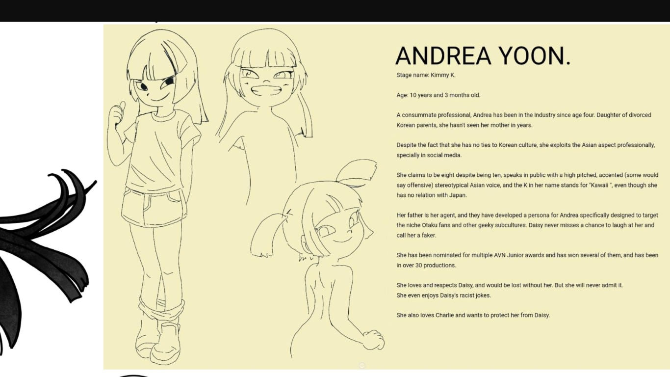 >>152042753>The descriptions seem too complex, thought out and interconected to be just for nothing.Believe it or not, some people actually create very complex backstories and detailed personalities for characters, even interconnected ones, without writing a narrative for them to exist in. Oh, what would be a good example of that...?Gee, I don't know... where could I show you that people do that? Ah, I know! Threads exactly like this one!That being said, the bios do include details that hint to it being an actual story. So, yeah, probably a comic.As I said in the goth thread, Kimmy > Daisy.Cool, smart and serious Asian that exploits nerds will always trump generic dime-a-dozen genki mesugaki brats.>The video series is called Cherry Picked>Kimmy Kawaii has won several AVN Junior awardsThe world-building is pretty amazing.