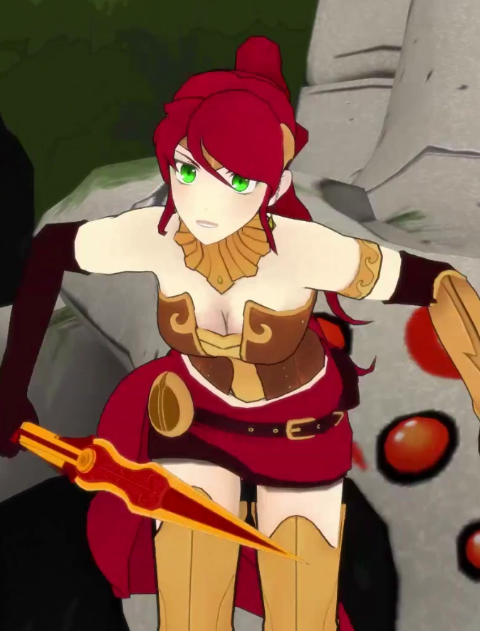>Top that shows off cleavage>Mini-skirtWhat were they thinking!?Pyrrha was only 17 years and 364 days old during the first volume.It's just wrong!