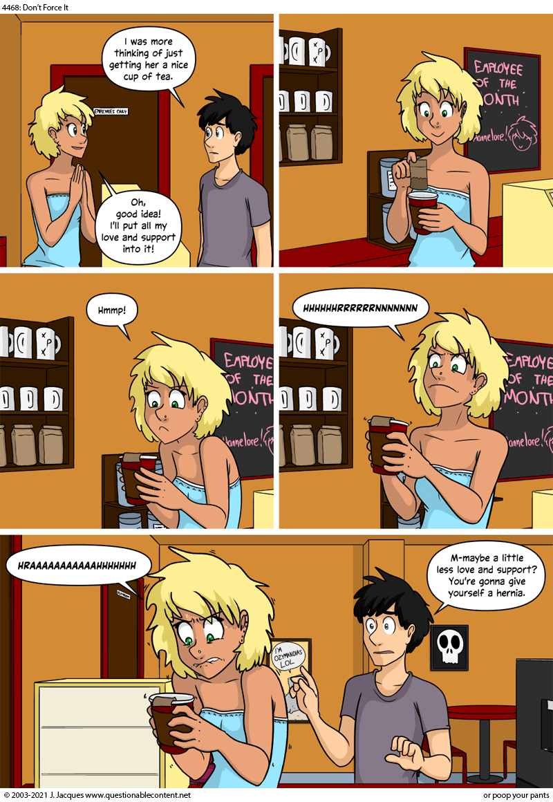 >>152032125https://co.llection.pics/post/list/artist%3Adbaru%20questionable_content/1Be warned, there's no going back.>>152031861>It shouldn't take more than a minute to shit.You forget Jeph is in his mid 40s with a likely history of opioid use. He may be writing about characters in their 20s, but his problems become their problems.