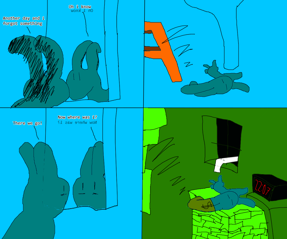 >>152036782I originally wanted it to have a plot, but i honestly didn't lead me to make more of it and lead with a big hiatus, so you can say it's slightly random, i do want things to happen with a reason if i can, or add plausibility, but for the most part, i just make comics that i think are funny.
