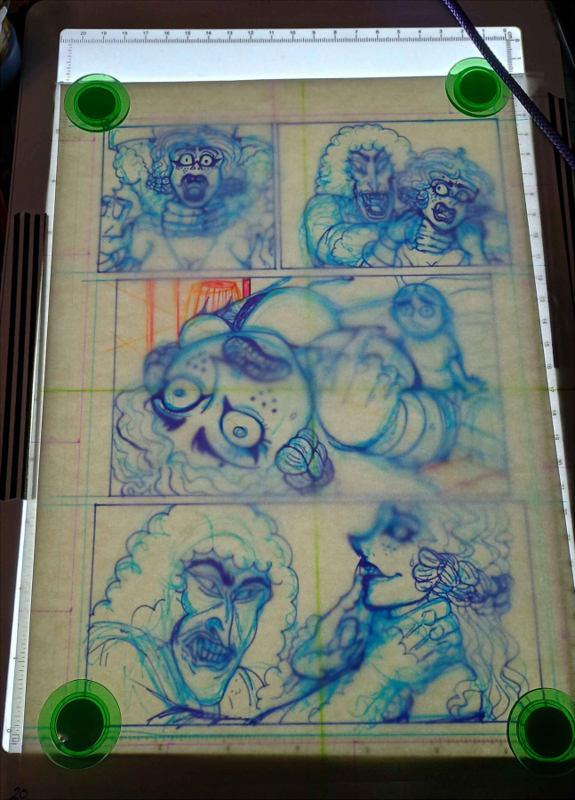 >>152047895I make my comic with mixed media, so like you I draw all my inks traditionally. If you really enjoy the aspects of traditional inking (I personally find it much more rewarding in the creative process), I REALLY recommend a lightbox. A lightbox will eliminate the need to clean up the graphite. They're pretty cheap now and USB-C powered. You can buy some rechargeable ones but the bigger ones typically need direct power. Luckily low voltage and while LED, the light colors can typically be changed so it's much easier on your eyes. Some even come with drawing guides and magnets to keep your paper secured while you're working, which are extremely helpful!