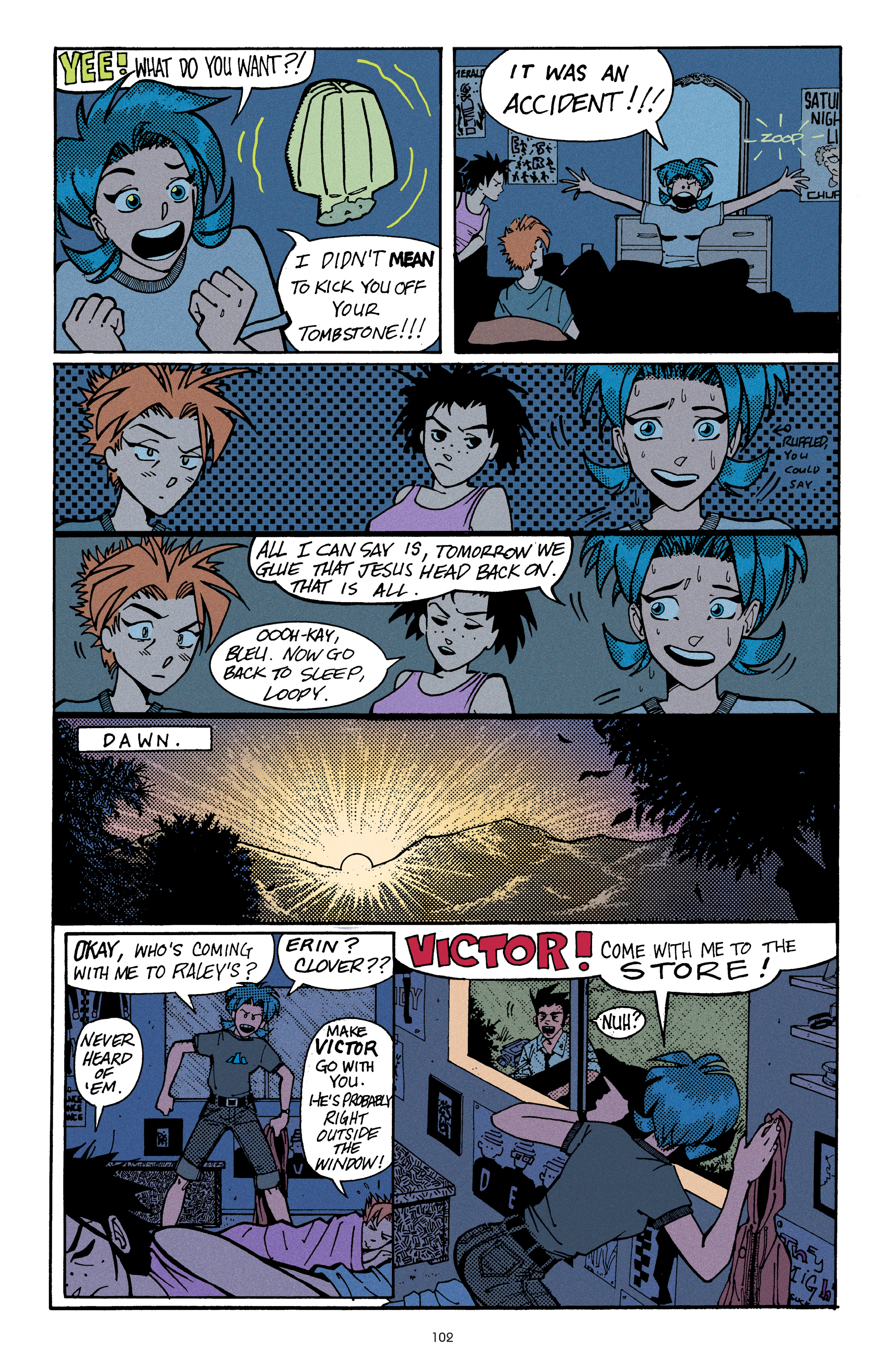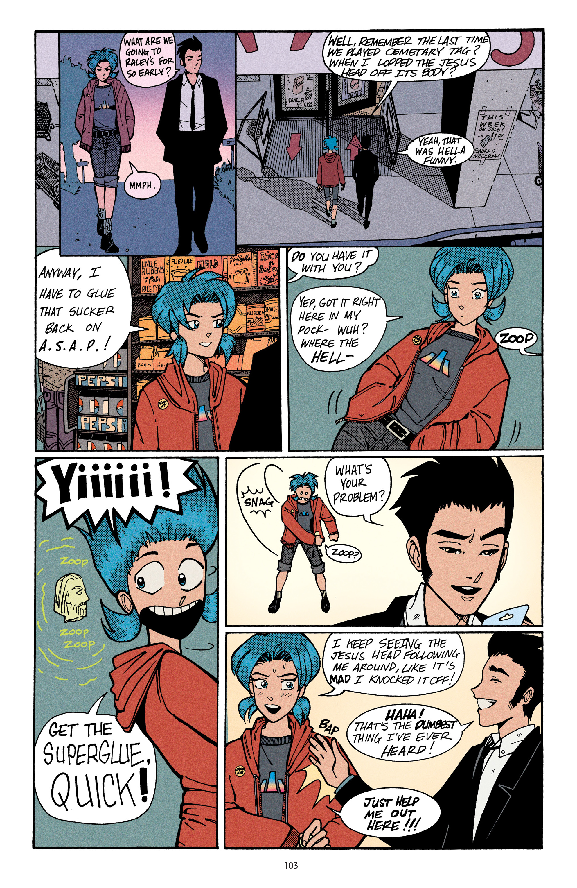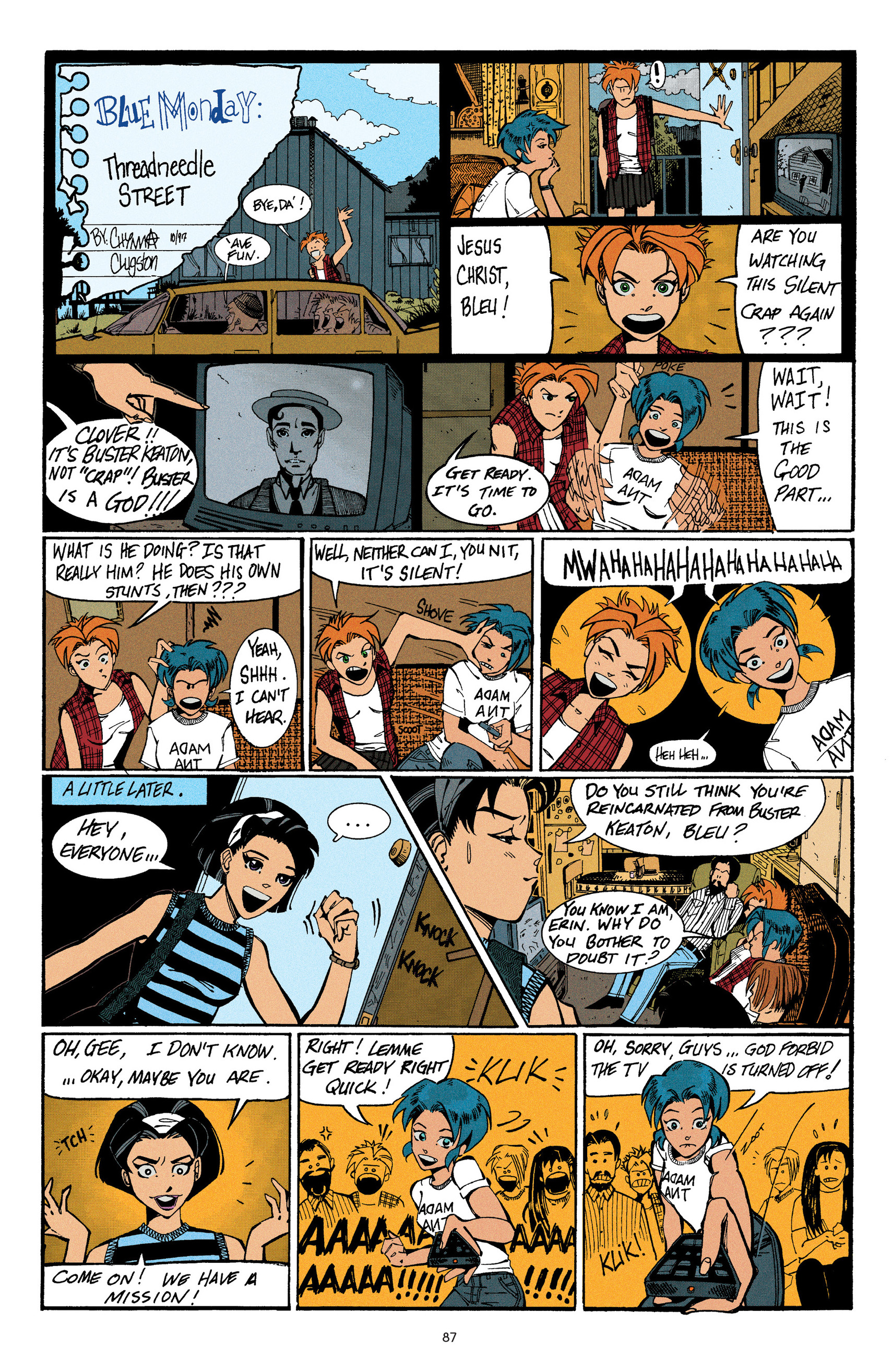 >Experience the Pepsi-fueled misadventures of Bleu L. Finnegan, comics’ favorite blue-haired, Buster Keaton-obsessed, Adam Ant-worshipping teenager from the very beginning! Featuring an introduction from Kieron Gillen (THE WICKED + THE DIVINE), learn why this highly influential and critically-acclaimed comedy series has often been compared to the comics work of Rumiko Takahashi and the John Hughes/Molly Ringwald film collaborations of the 1980s. Here's the first collected volume of Blue Monday, The Kids Are Alright