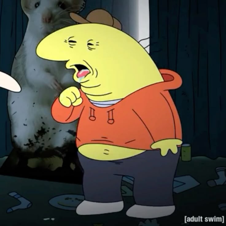 >After seeing the circumstances he's fallen into, ICuck imitator starts switching from a Smiling Friends poster to (A: Cartoon dad, B: Screaming Coob or C:BBC)