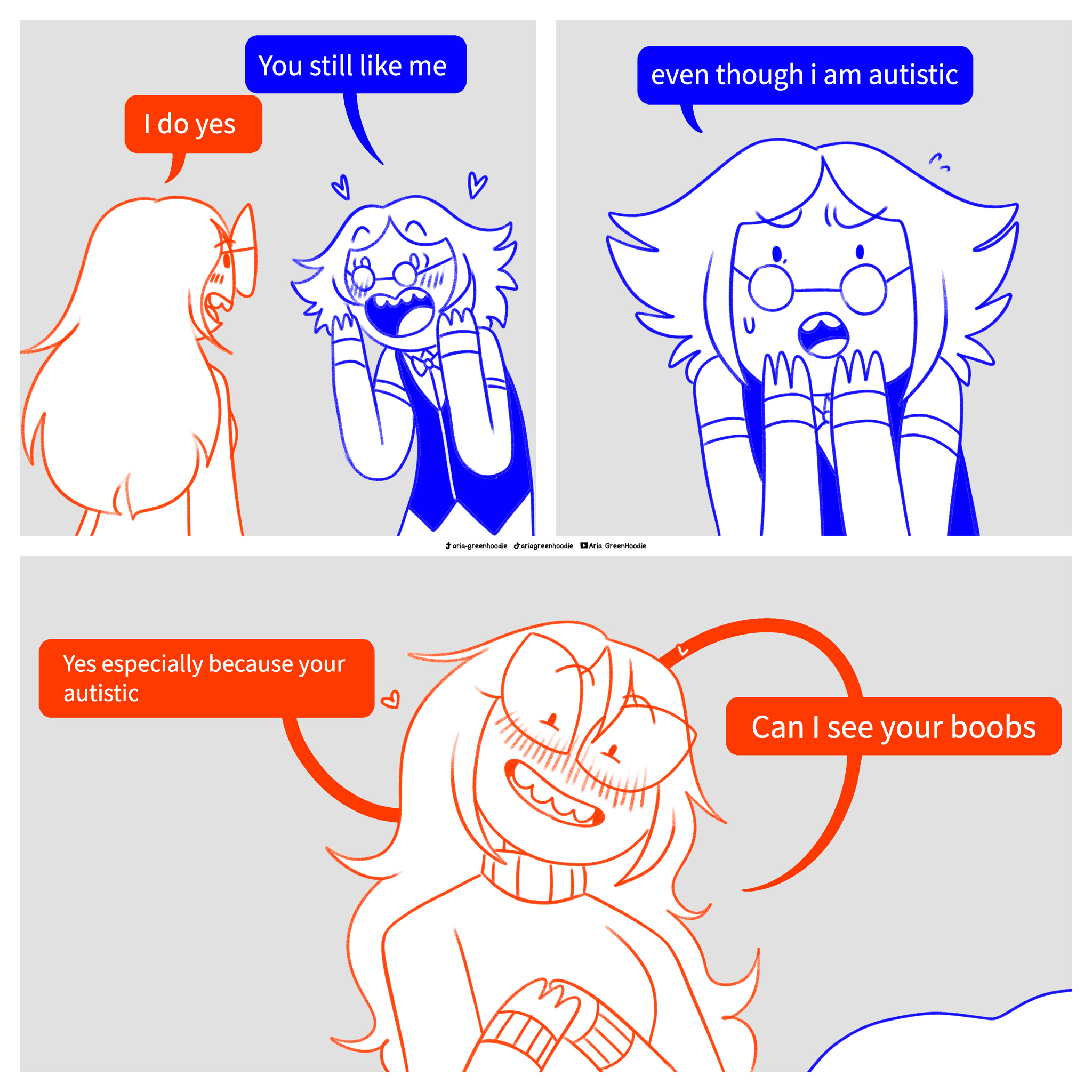 >>152059402Oh noooo, she’s scared that he’s a blue randumb quirk chungus who says “boingloings” lmao