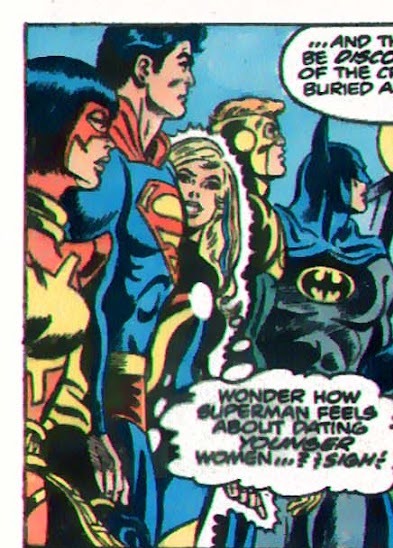 >>152064646Batman married his adoptive great-granddaughter (the Supergirl in the picture).I'd argue the 80+ year gap between them is worse, especially considering Bruce fucked BJ's mom, Talia, and Diana before moving onto his own family.