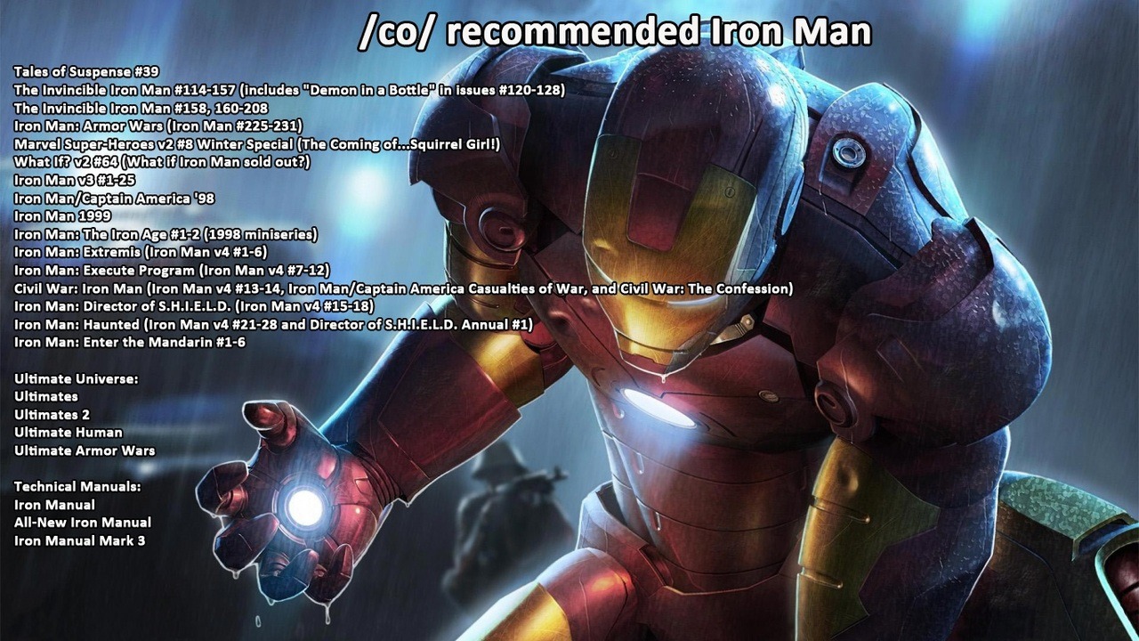 >>152069636This recommended list feels terrible. So much of what is important to understand Tony Stark, Iron Man, and the world he lives in is omitted.