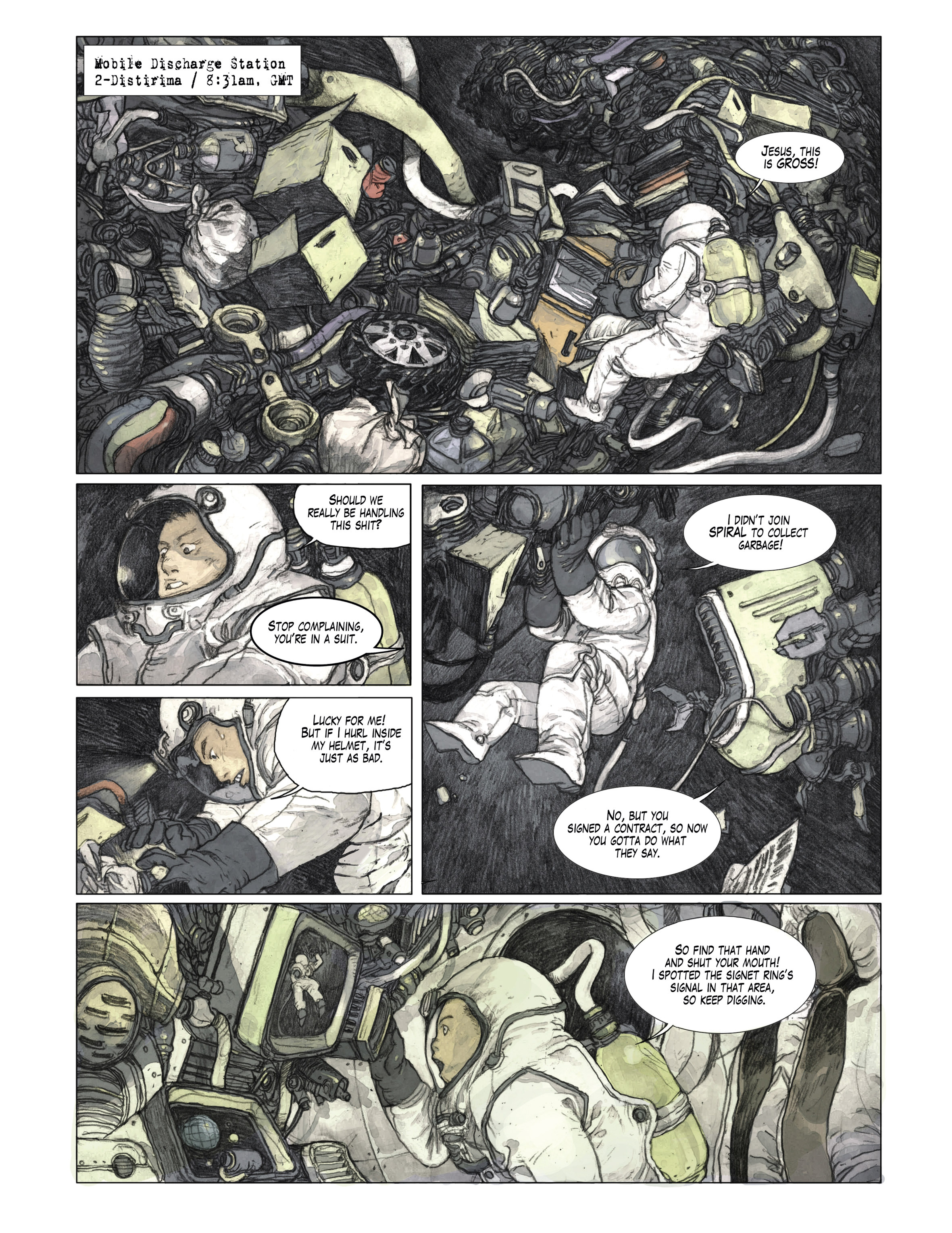 I've read the first volume, completely forgot about it until searching.It's by Jean-David Morvan, the writer of Wake (Sillage) and also Reality Show, which had a very bleak view of society.I'll dump a few Zaya pages
