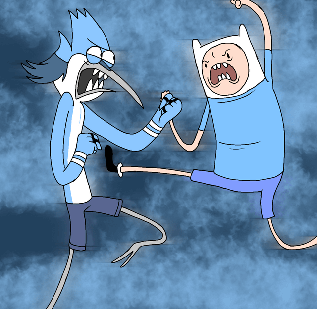 https://youtu.be/GCm_RSN2ZTk?si=PYSOT51Any8-UhFj>Mordecai and Rigby kill Finn and Jake for having a picnicThese are your heroes?