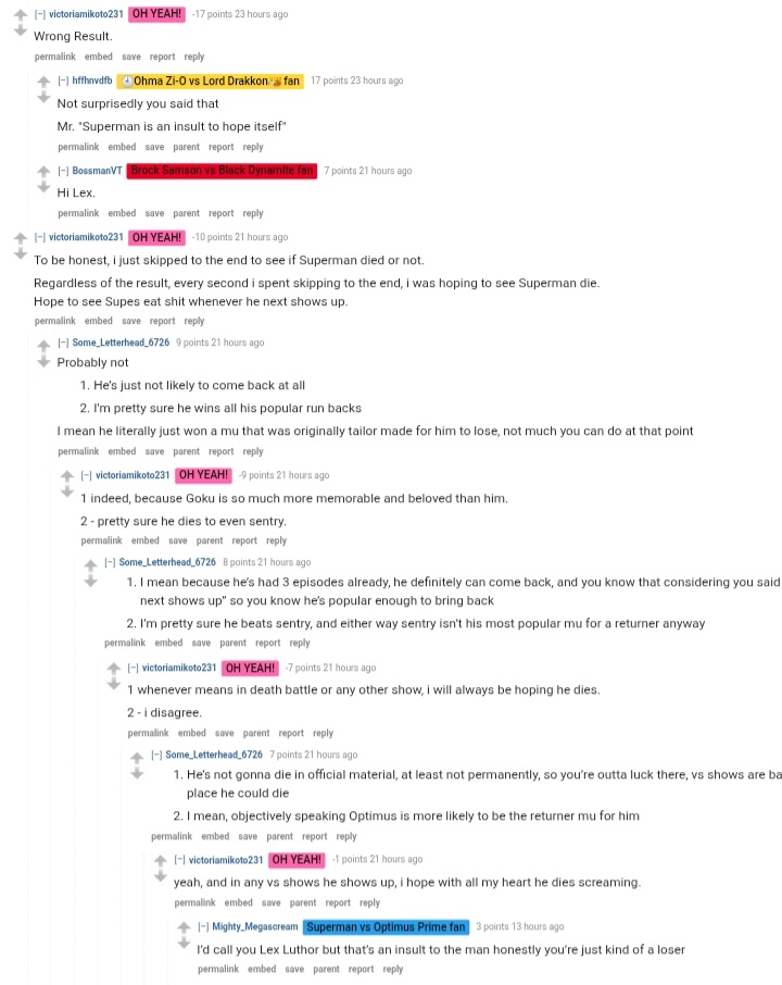 Post Superman losing in Fan BattlePost Scarlet King beating Superman in Fan Battle