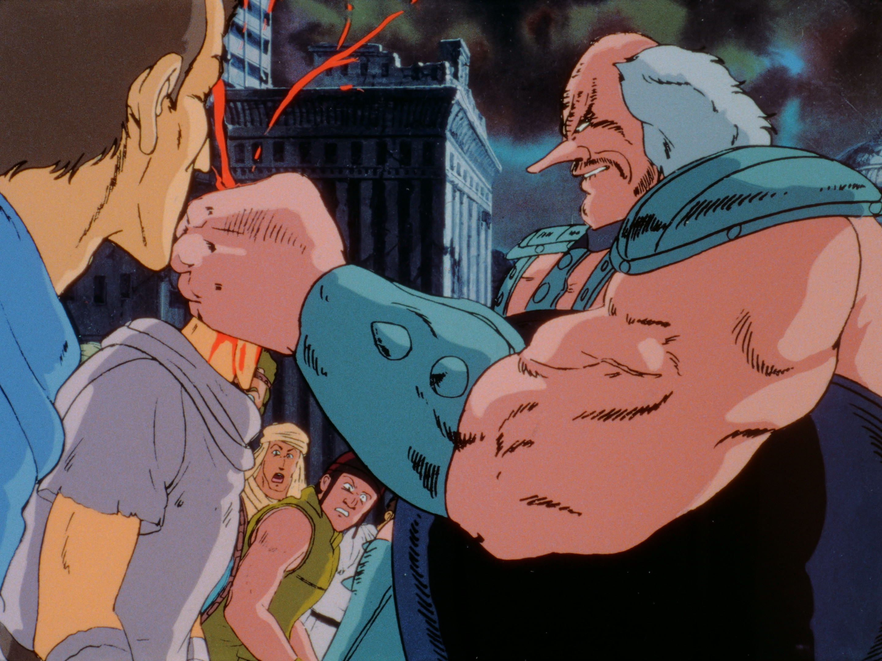 Human sized Japanese hero fights an offshoot of the Nazis, kicks them so hard they explode, more and more people are turned into cyborg bug men to fight the same offshoot of the nazis.