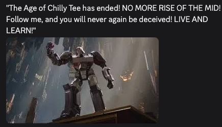 >Transformers Reactivate cancelled>No sequel to Transformers One planned>G.I. Joe Crossover quietly canned cause of the merger from its parent company and the diminishing returns of Rise of the Beasts>Transformers Battlegrounds being delisted>Earthspark ended in a surreal wayCheck on your local Transformers fan.