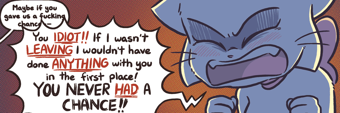 >>152159860Oh that was you? What I saw was you posting attempted example after attempted example while pointedly ignoring how each was picked apart in turn. I see that you have not changed tactics at all and, much like the other anon I've been talking with, have chosen to sacrifice your self-worth over a badly written cat comic.