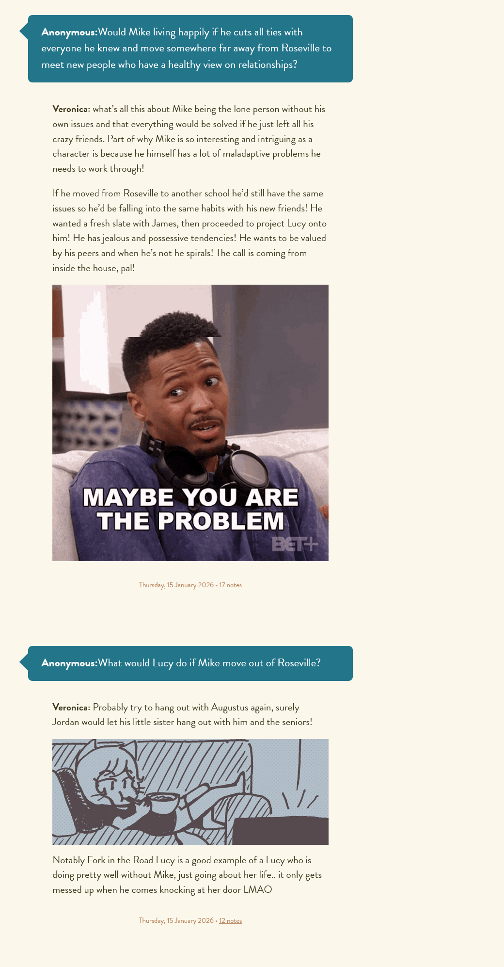 >>152154918>Why does everyone have to parallel Lucy and Mike in some way?Who do you think this comic is about?