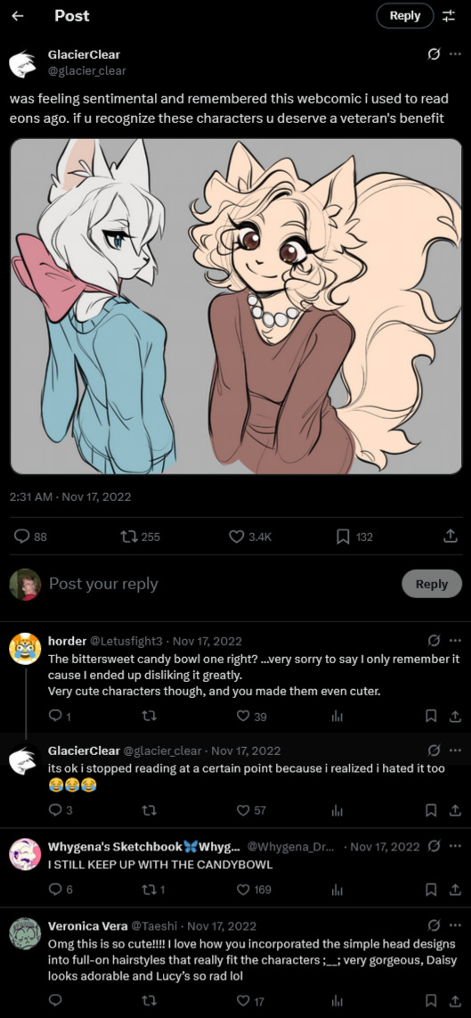 >>152154458That's fair, she complained about how no big artist makes fanart for her comic and who knows if she's resentful that the one who did commented right away that she dropped it because it sucked. I wouldn't find it weird that she keeps searching for fanart on whatever places she still has the fortitude to visit