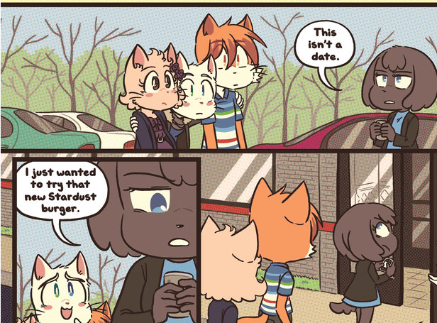 >>152156475It's pretty much a "show don't tell" situation, someone from the senior table mentioned how the relationship between Jordan and Tiff worked out visuals included, but we have yet to see it happen on real time, not even on the prom did she make an attempt to entertain Jordan's baby talk, so we are left with an idea of the character formed by what someone else said, which if you remember Line in the sand it's almost a theme of this comic