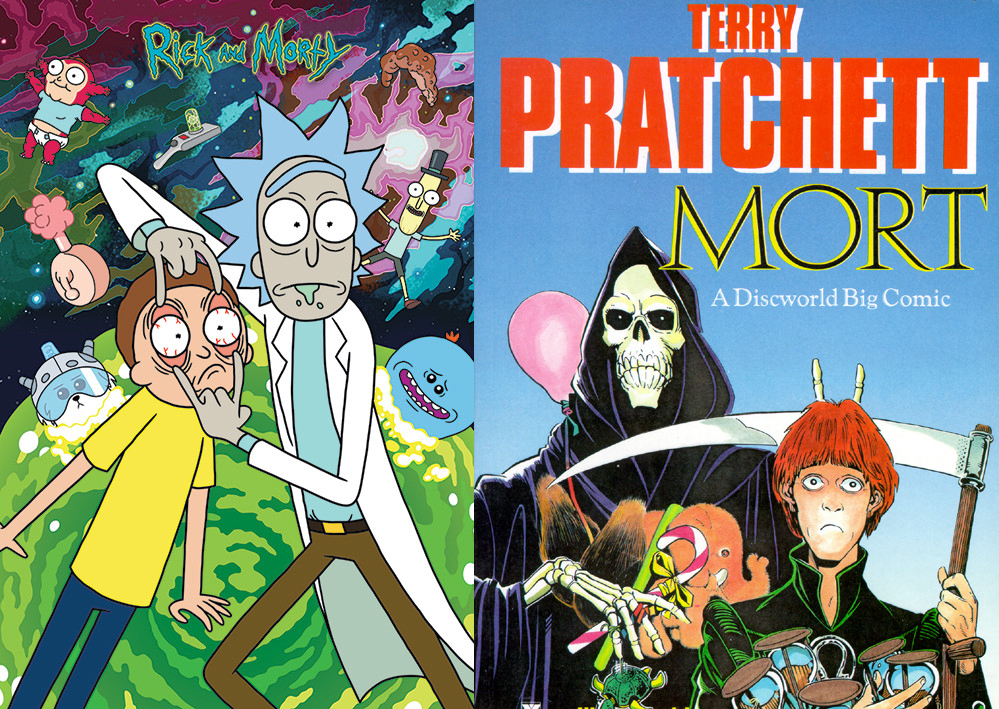 Requesting Death and Mort in the style of Rick and Morty