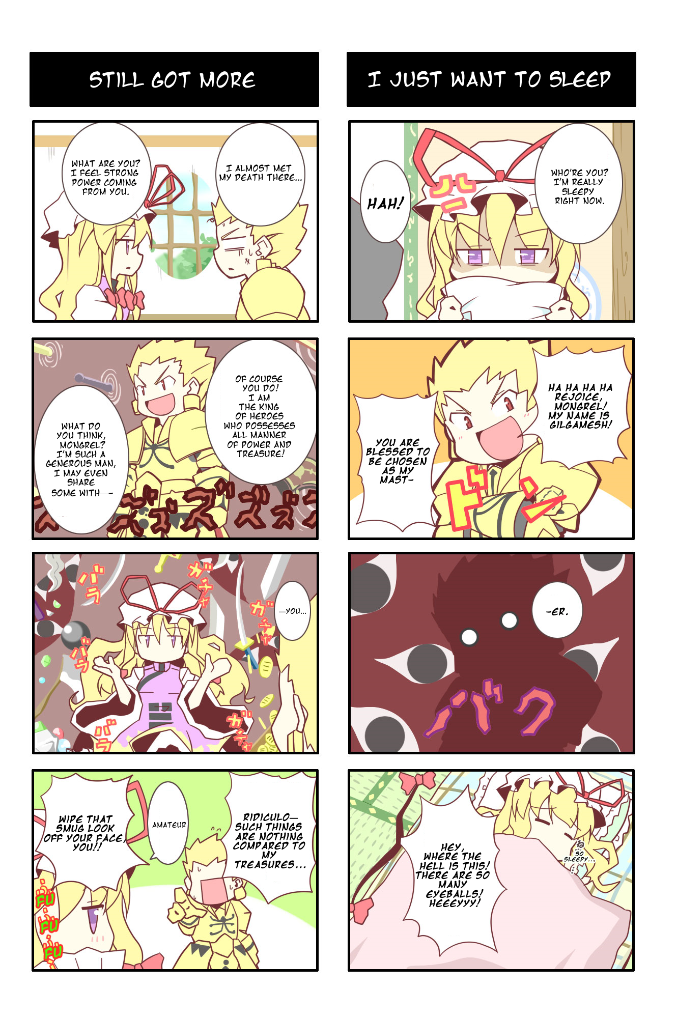 >>152169355Former endgame bosses who have gone from adversary to more friendly and whose depictions have lightened, protectors and rulers of lands of myths and legend, sometimes unusual and inhuman morality because of position and power, shoot things out of portals, Gil would hate Yukari because she might be feeding humans to youkai