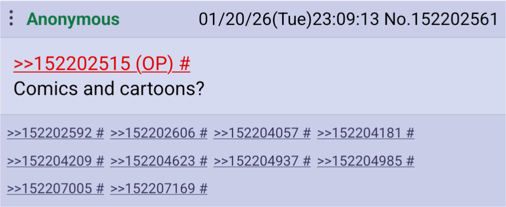 >>152202515Comics and cartoons?