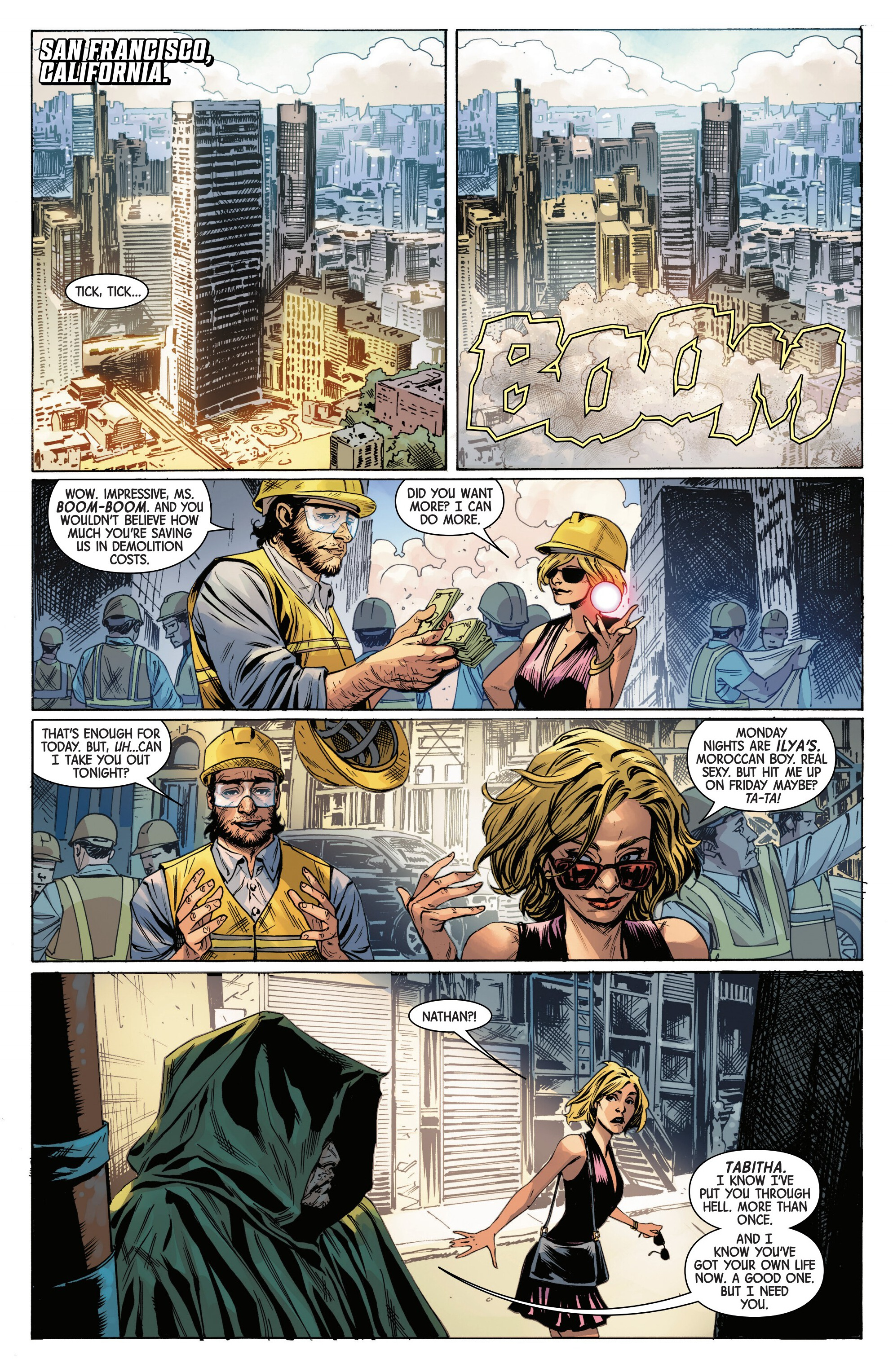 Ha, Boom-Boom is working as a demolitions expert.
