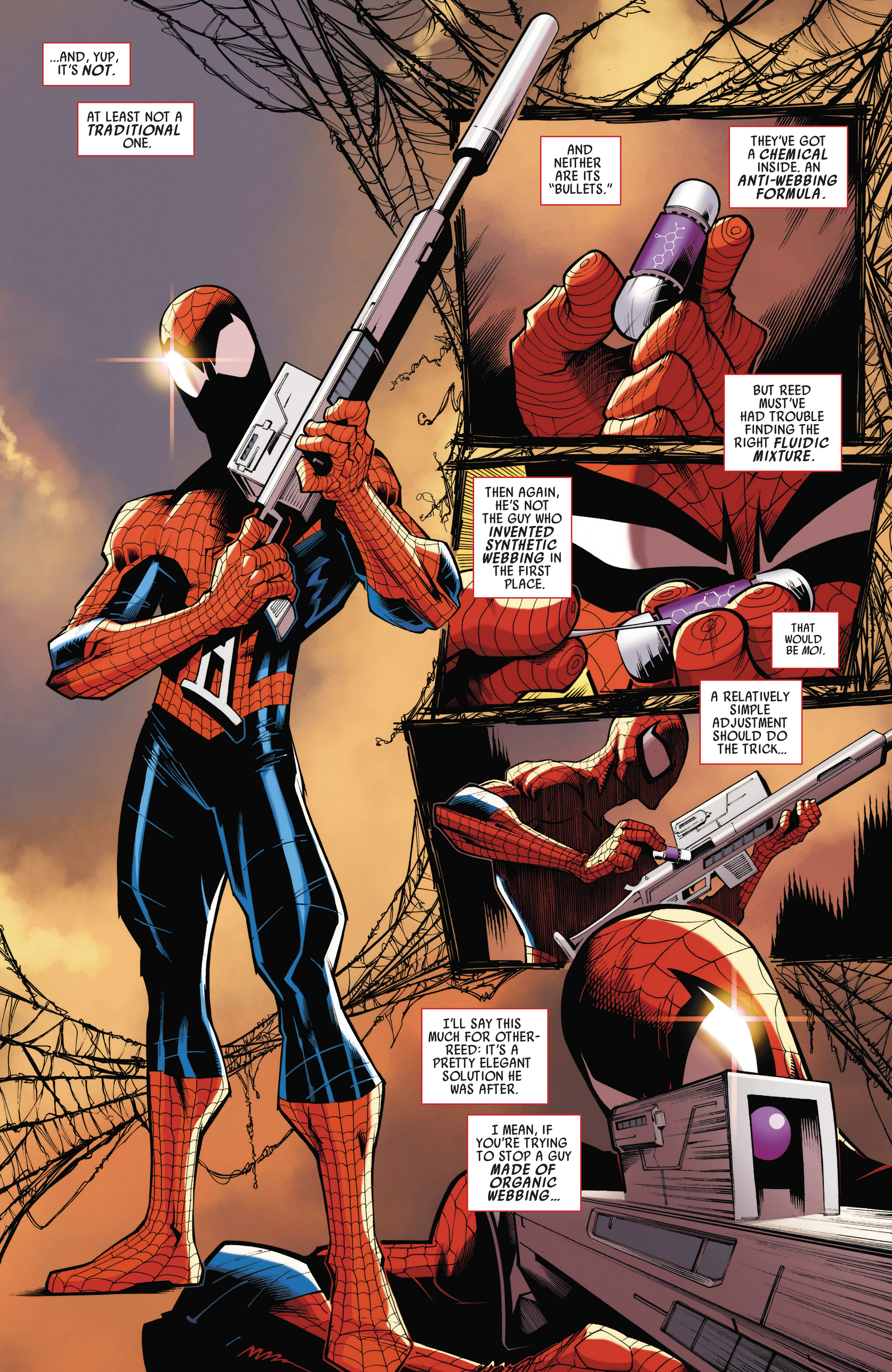 >The gun contained an anti-webbing formulaMakes sense, he was made of organic webbing so normal bullets would be useless against him.