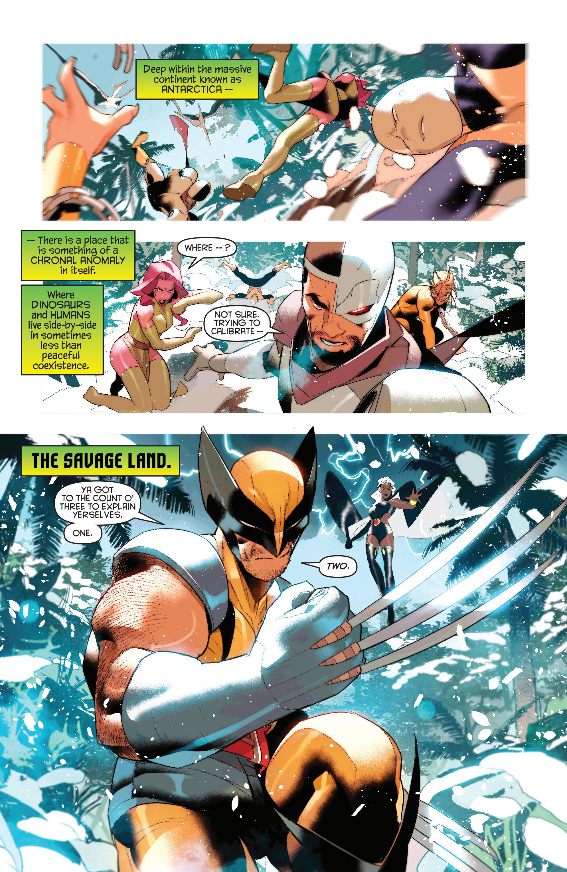 So the team has been split and are now in the Savage Land at two different periods in time. Let's see if they'll find those M'Kraan shards here.