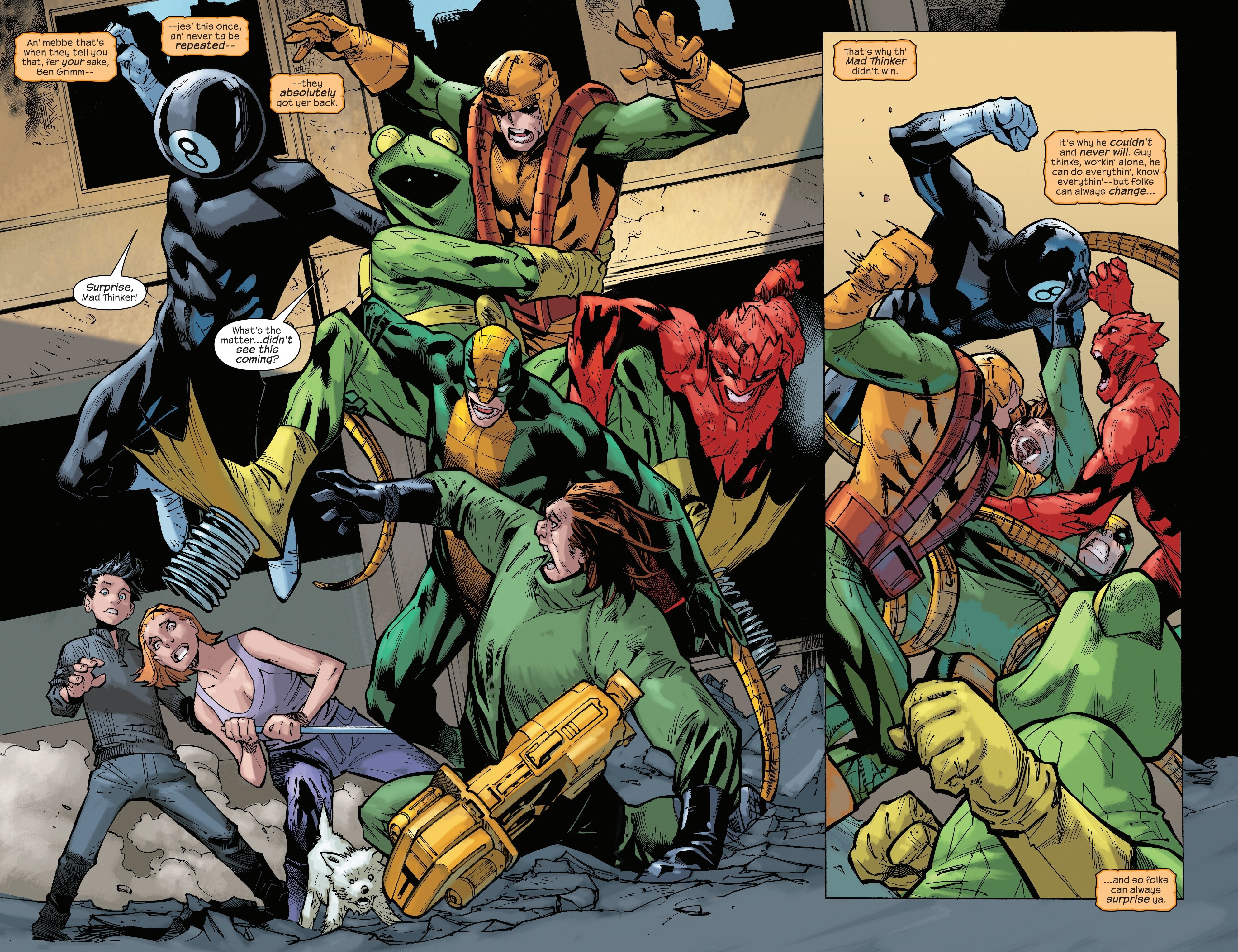 >>152208284I guess North is establishing, after like 60 years, what the Mad Thinker's name actually is. He's one of those types that just never had one revealed, though before it appeared it might have been Julius, though here it's Rene. Rodin is a good last name though for him, what with the Thinker statue.