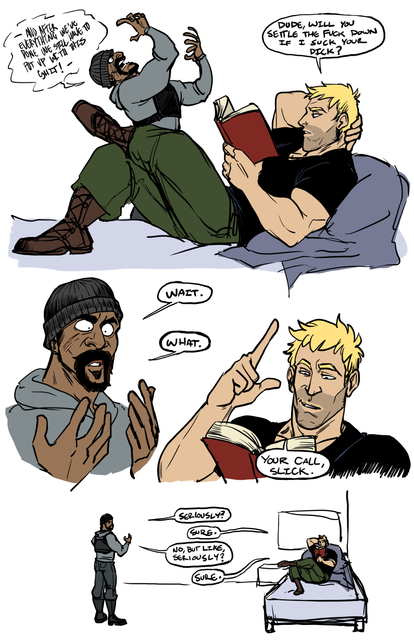 >>152225411If you are going to make straight characters fags, then go all out or go home.