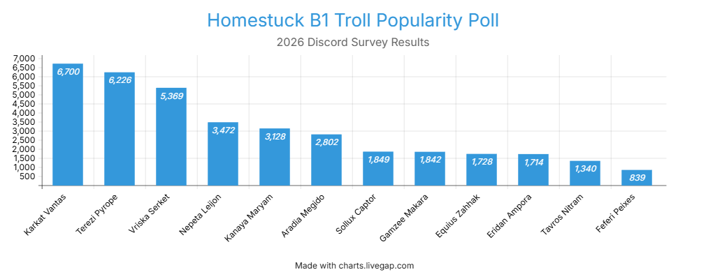 For whoever didn't see it last thread, these are the results of the Discord popularity poll in graph form. Troll graphs will be forthcoming.