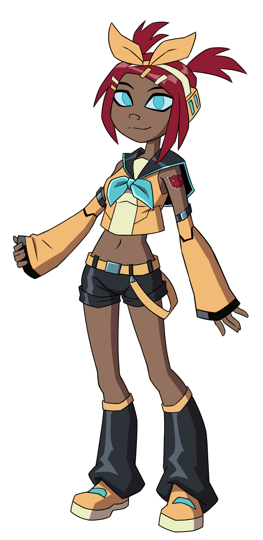 Hasbro never had a problem with the midriff, or even her tube top. They let us use the coat pic in the Allspark Almanac Addendum and the Complete Almanac for the diary page after all. She just has multiple outfits. The experiments don’t have anything to do with how she dresses, she’s allowed to dress how she chooses, within reason. Isaac would never allow the tube top outfit while she was under his control. I think you guys will like her outfit in the comic.