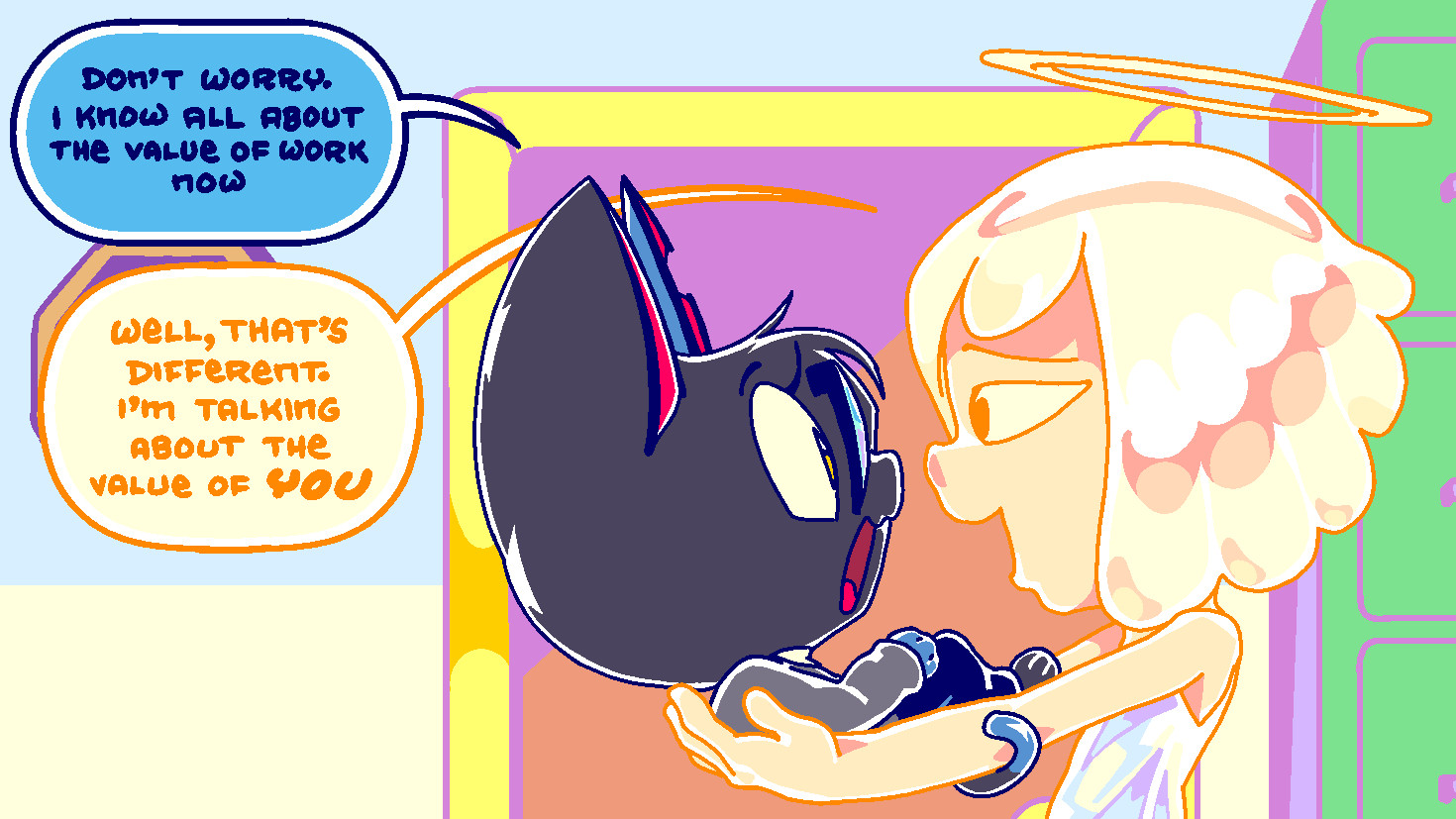 >>152272682Damn, I actually really like this one. Though, I hope they don't stick with them being shoulder angels and demons. It's too limiting a concept. If it gets a full show, which it most likely isn't, I hope they do general angel things. Like, they could be guardian angels too.