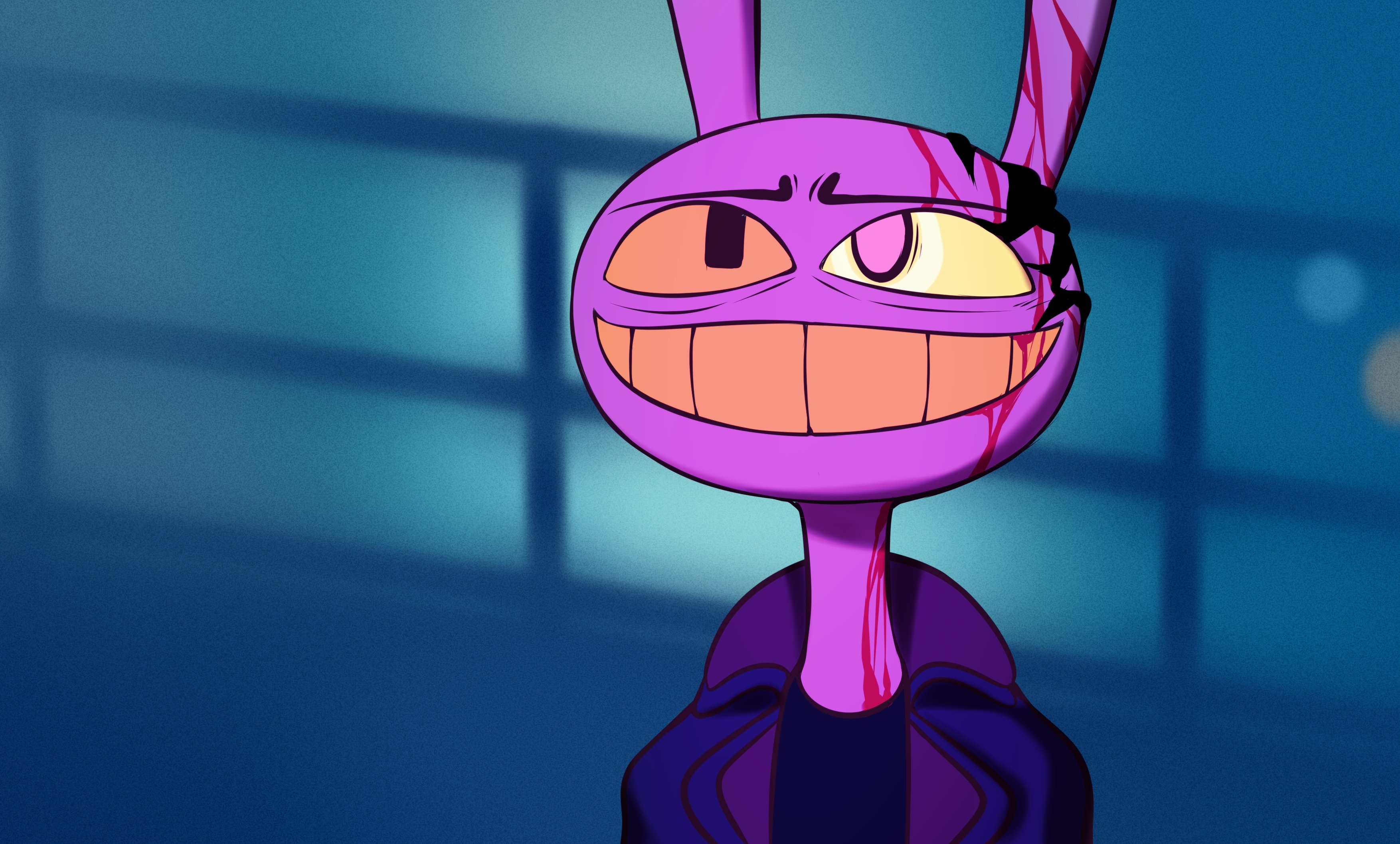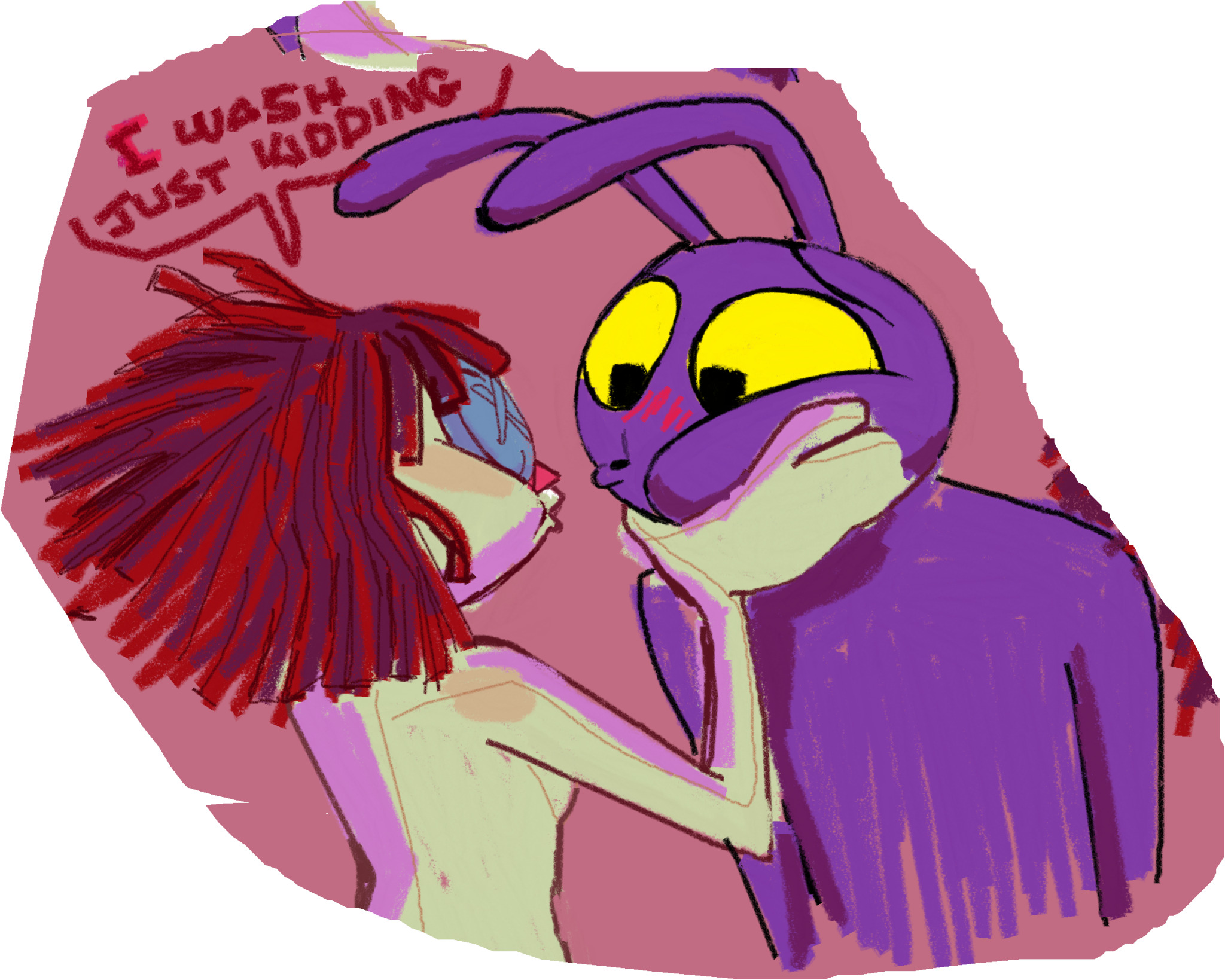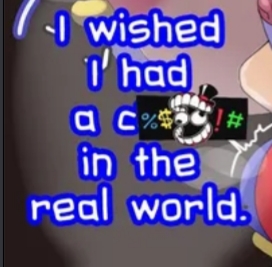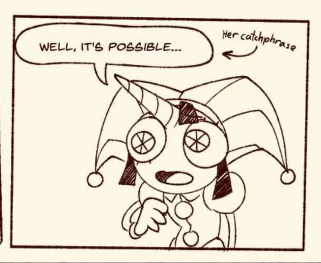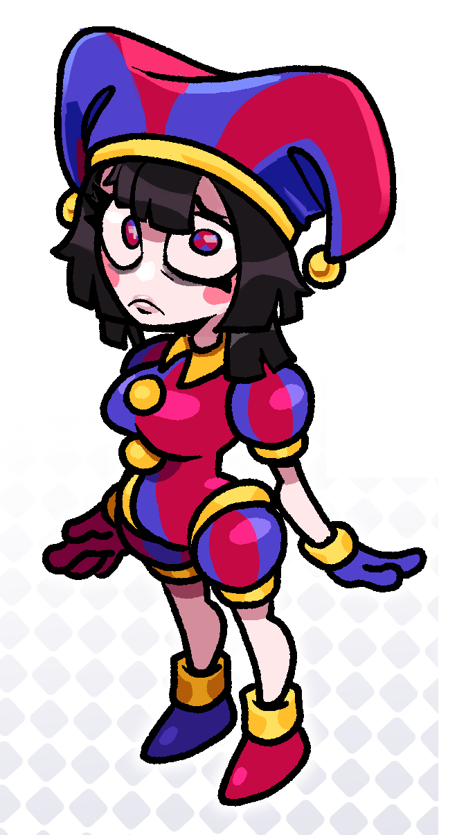 Small interaction idea between Pomni and Jax>"I'm the baddest boy in the world.~" Jax says trying to be all smug >Pomni tries to be more confident in herself and retorts with "Well, I'm the baddest girl in the world.">Jax freezes up, bluescreens and jizzes his pants