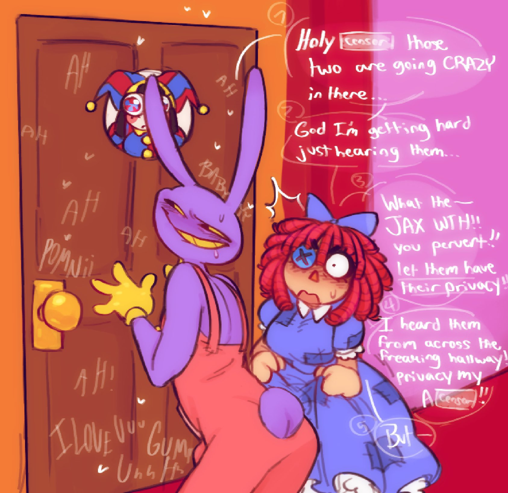 >>152282824>>152282782>>152282762>jax starts trying really hard to be nice so pomni with praise him and stroke his ears