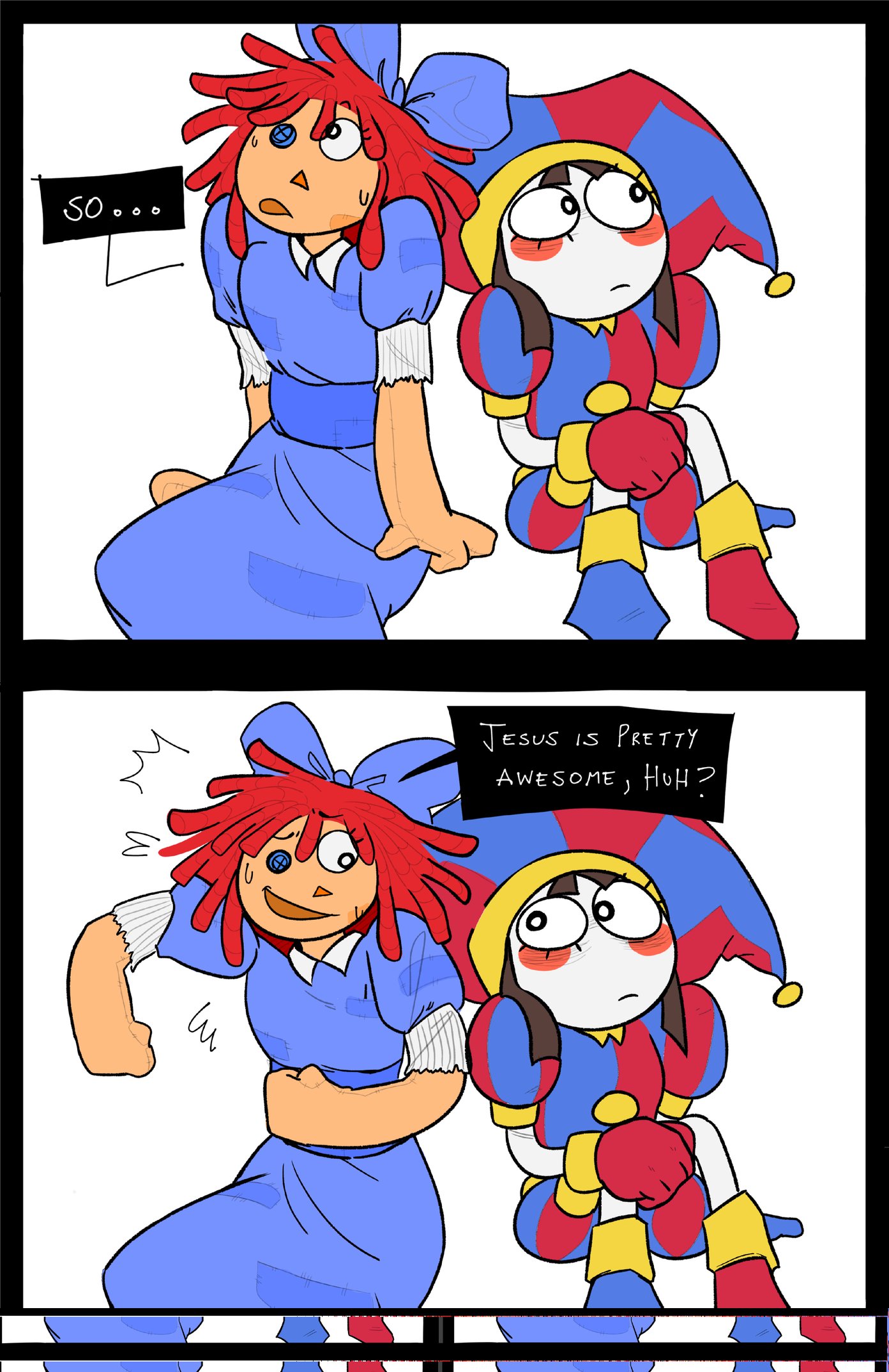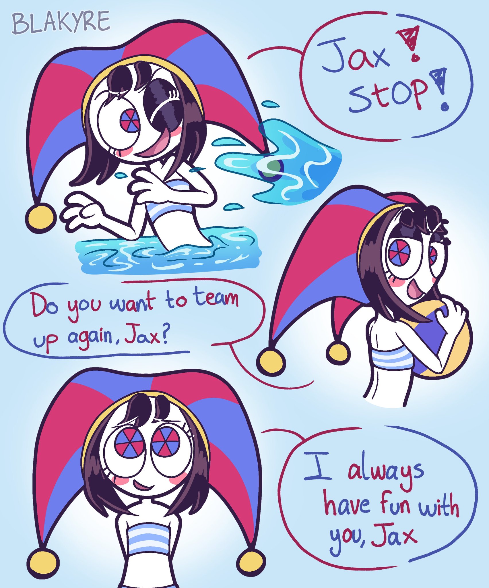Do you guys think Pomni would take the "comfort dom" role with Jax?