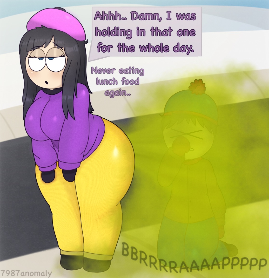 >>152313899>Cartman puts steroids in the school lunches to give others wicked hunger and make them all fat>Unfortunately comes with the side effect of making them just as aggressive and gassy, body slamming into him with their fat guts and asses and brapping
