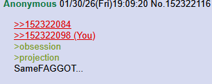 >>152322084>>152322098>obsession>projectionSameFAGGOT...