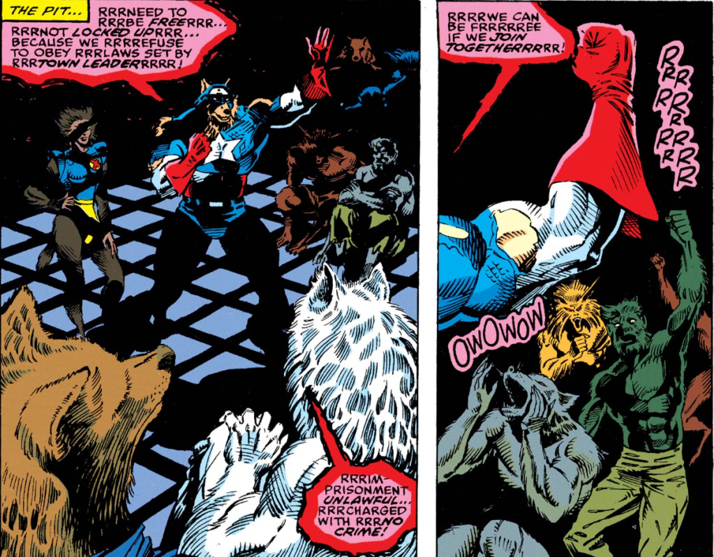 >>152323680Another example of Cap coming to bat for mutants. Also fun fact this issue leads to Magneto getting a well deserved punch to the face by Nova