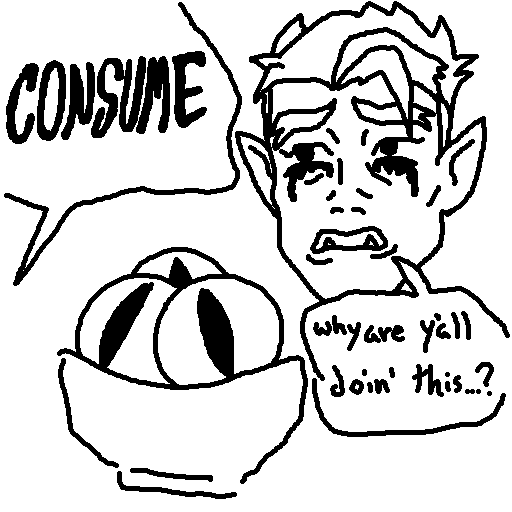 >>152347671>>152347473Honestly this was my thought too as she really was on her own with a murder frog. But makes you wonder what is she because iirc she's now a >Half halfling>Half elfBut since halflings do everything in half does that mean she's techincally a adult or does her elf side make her age slower. honestly I would love a series that really touched on the weird horrific combinations rpg/dnd players make and how'd they'd be viewed and work in canon. Because you've now got the shortest life span x the longest wtf happens there? Does she live for half a sec but never fully ages up, does she live for a normal human life span. Does she live a elf life span? Does she live half of both?
