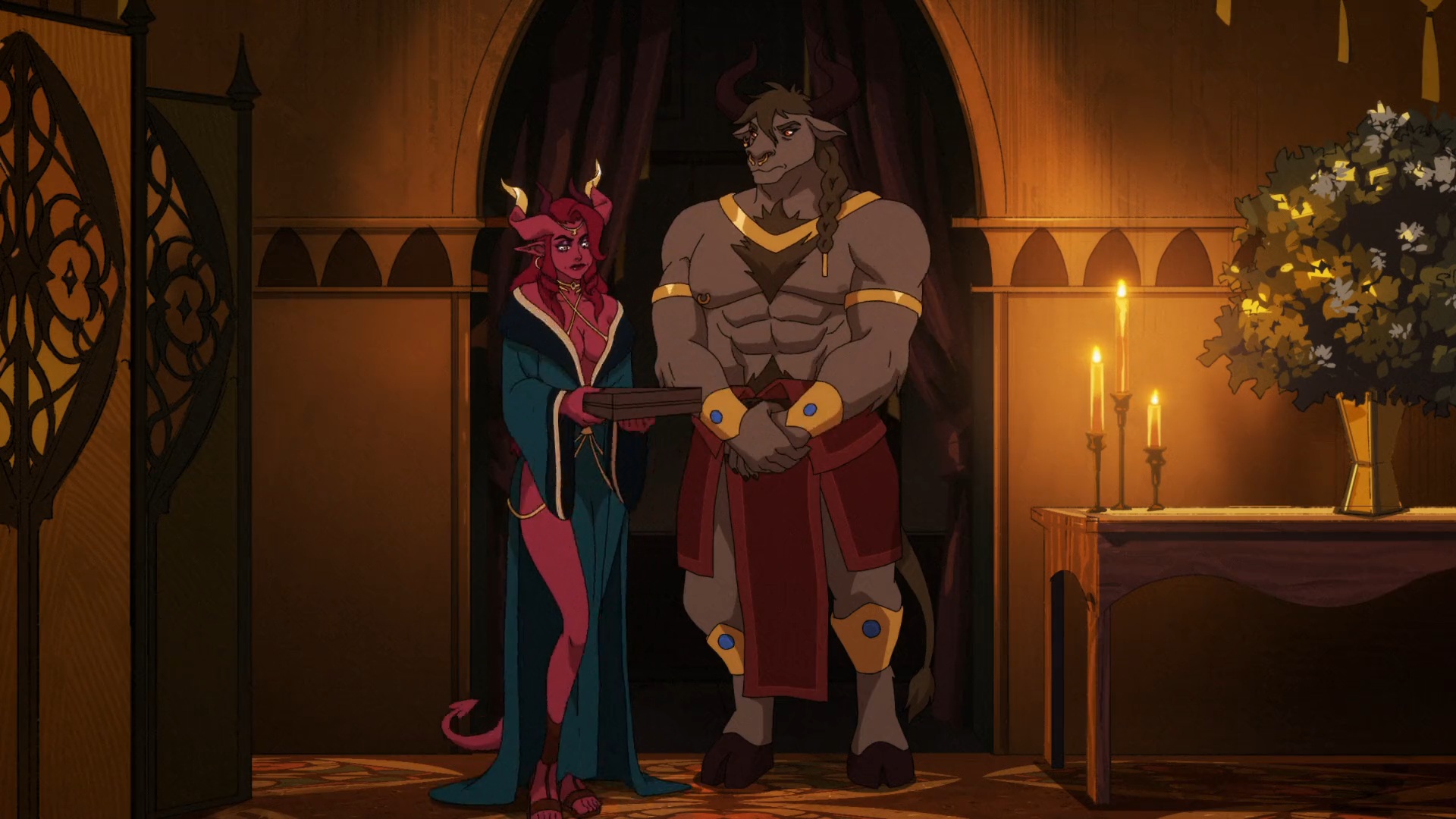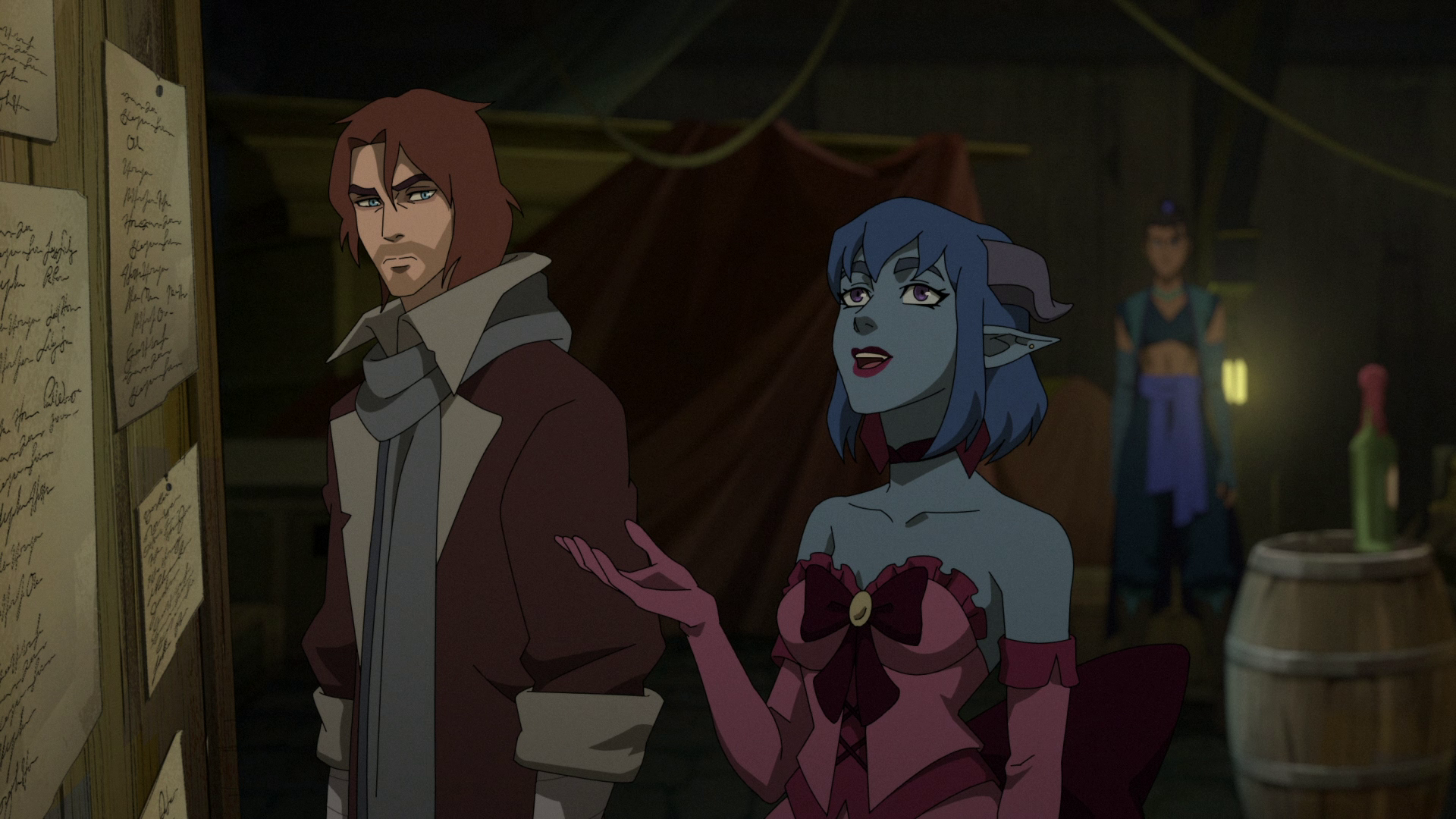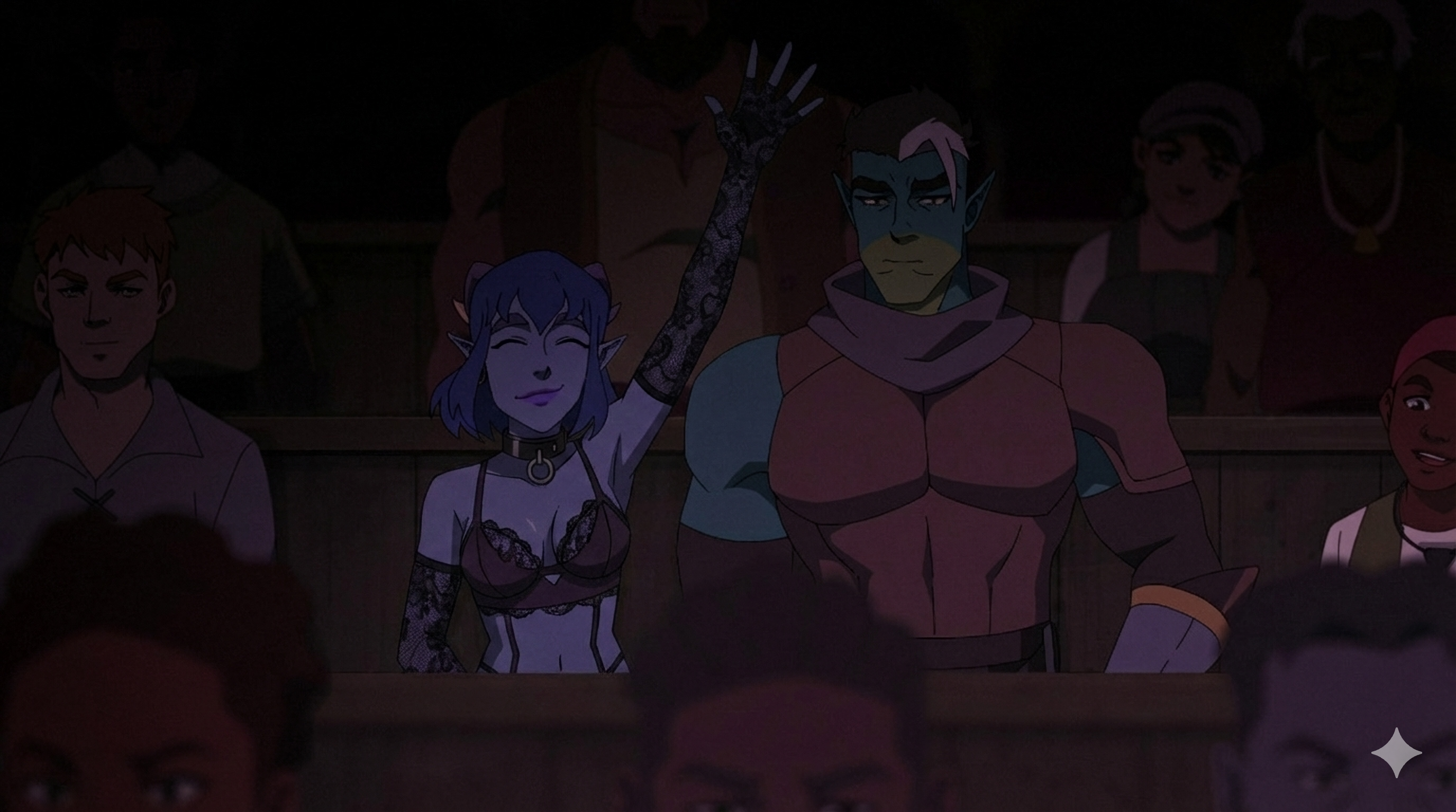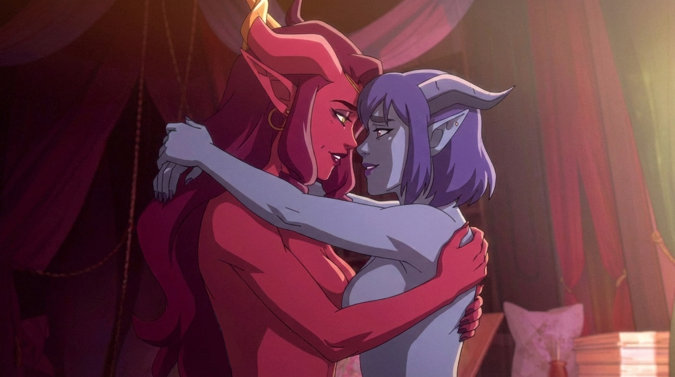 >>152326903I find it weird how they have no problem drawing dicks, nor a problem with nudity for background characters, but they absolutely won't let a nip slip for main characters like Vex or Beau during sex or bath scenes.