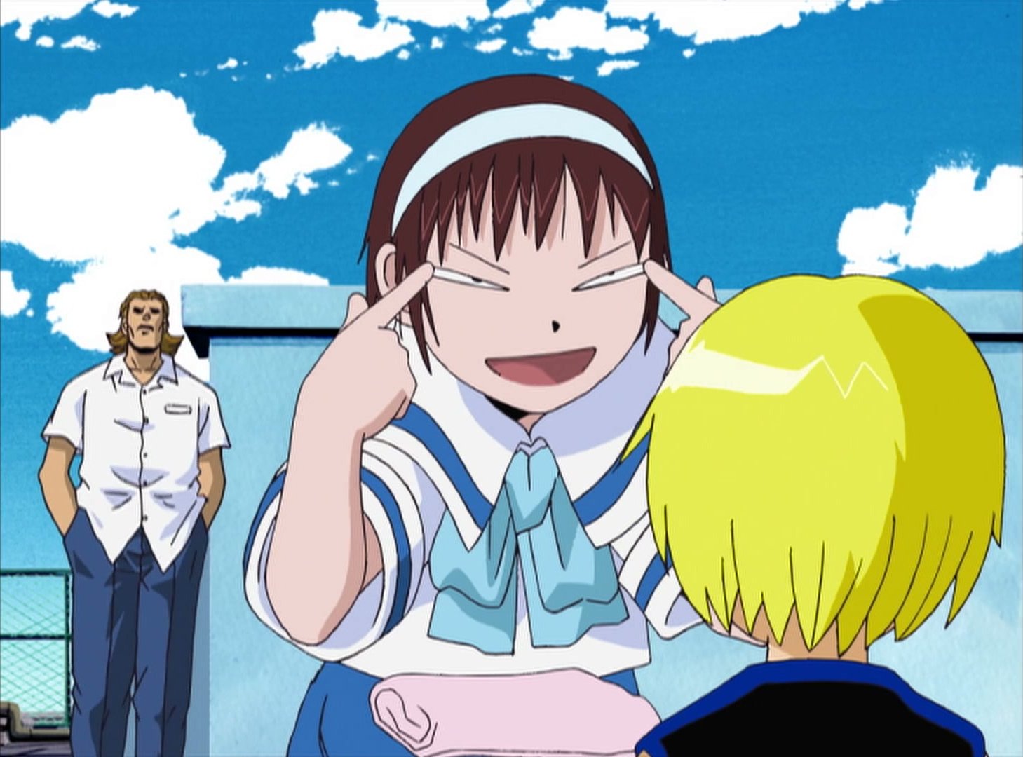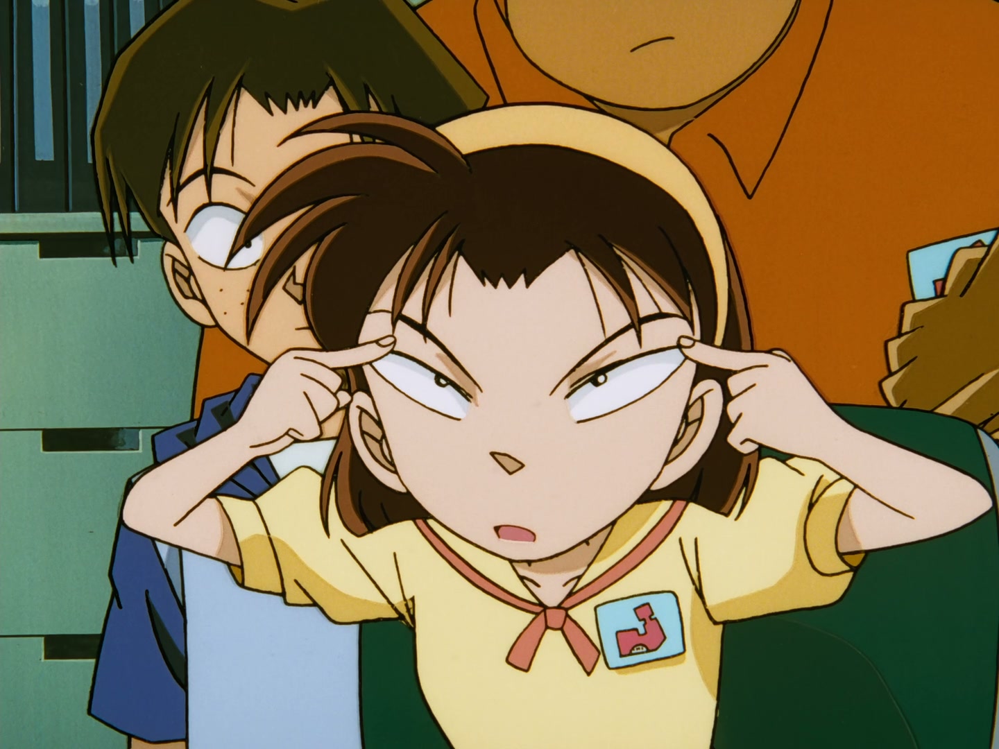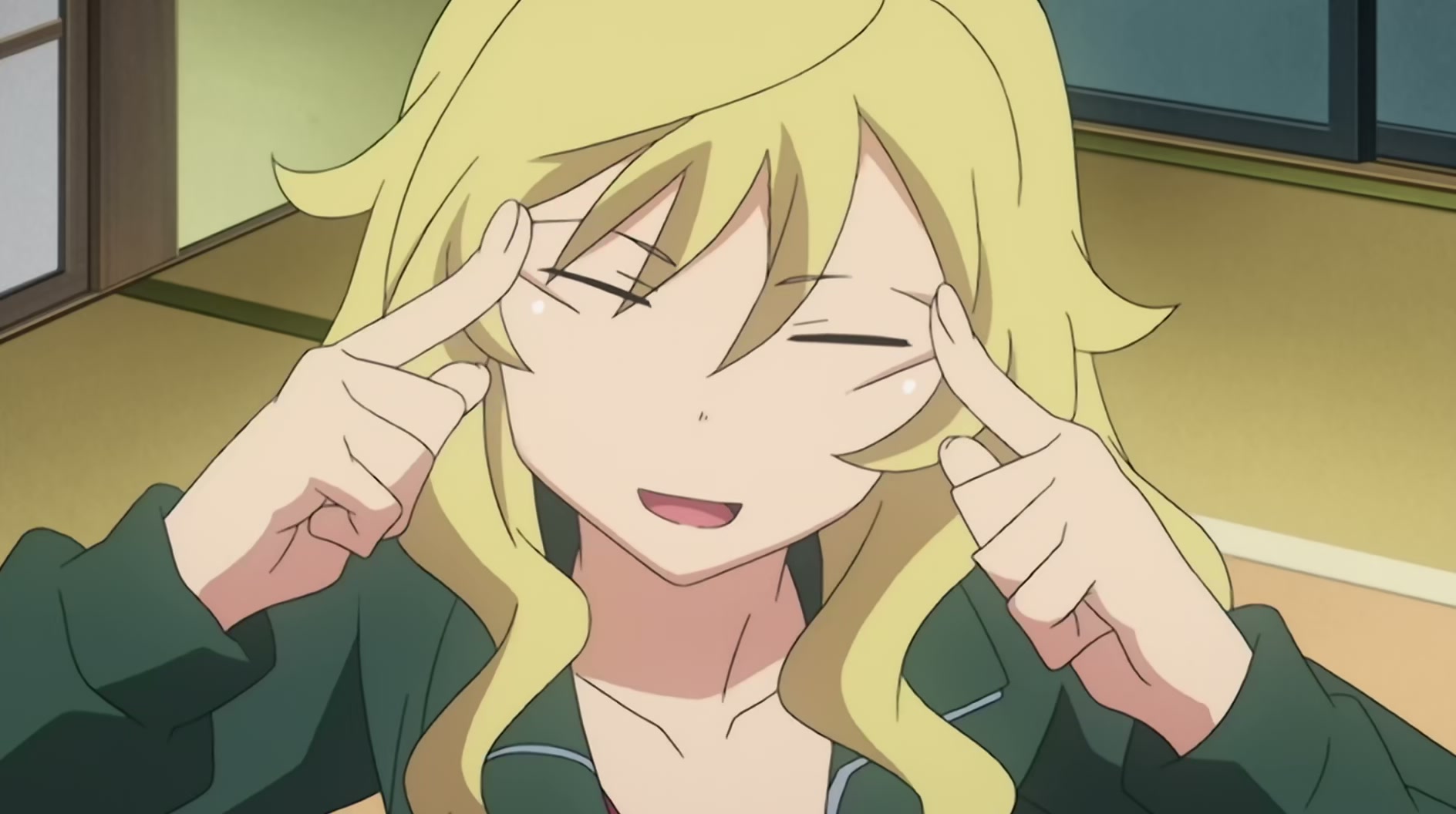 >>152327926>I have a small collection of screencaps from anime of people doing the slanty-eyes thing.Oh, post Miu!