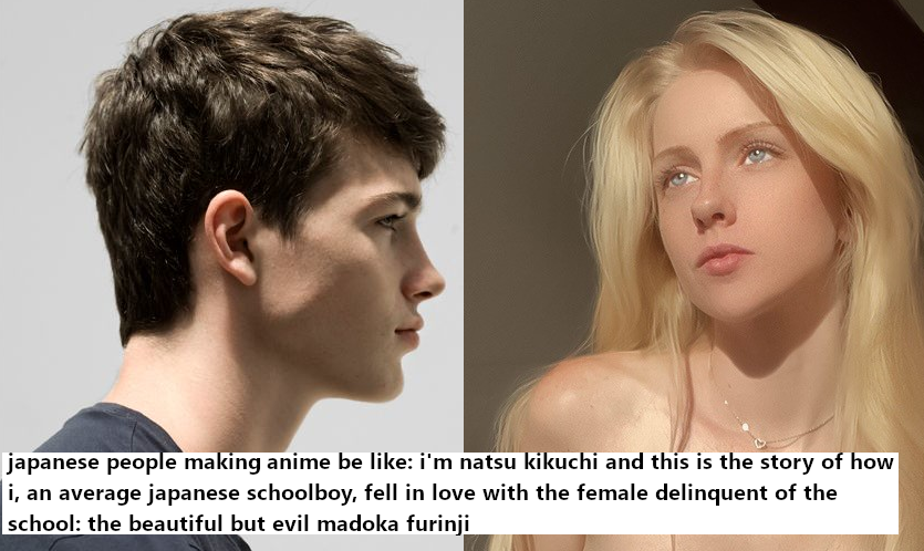 Realism. Think the entire cast of Persona 2 compared to Lisa from the same game. They all look very visibly Asian without being caricatures just as Lisa looks very visibly Caucasian without being a caricature herself.In cartoons, Pantheon did a good job of it but that's heavily influenced by Nipple Knees animation style. Invincible did a good job, too, and that's less Japfluenced.>>152327834I'm a quarter Asian and my 100% Asian grandma not only had blue eyes but strawberry-blonde hair. This is not unheard of in Central Asia but the West only ever thinks of East and Southeast Asia when they think of "Asian people".>>152327889>She has almond-shaped eyeslmaoMy 100% European mum has almond shaped eyes and so do I. We just don't have the eye fold.