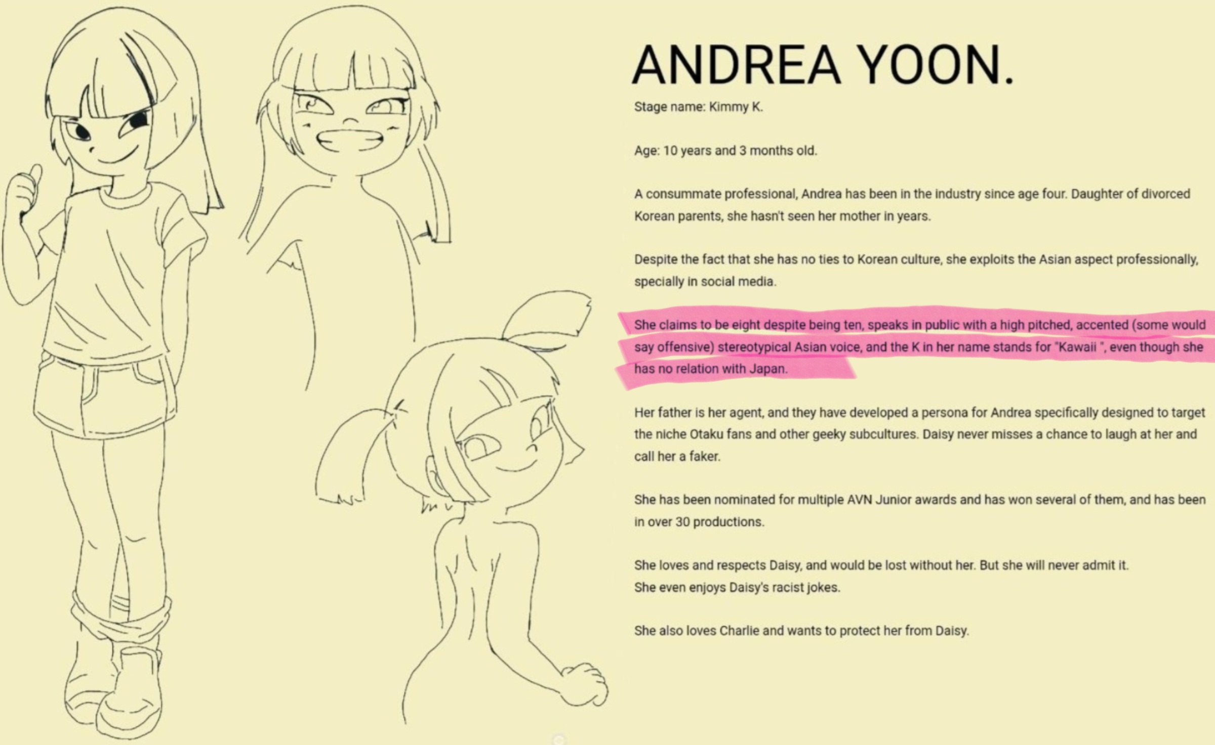 >>152327540the only thing Asians (both born and raised and westernised) will always seethe about is slanted eyes, so just give them slighted different skintones and Asian names and you should be fine