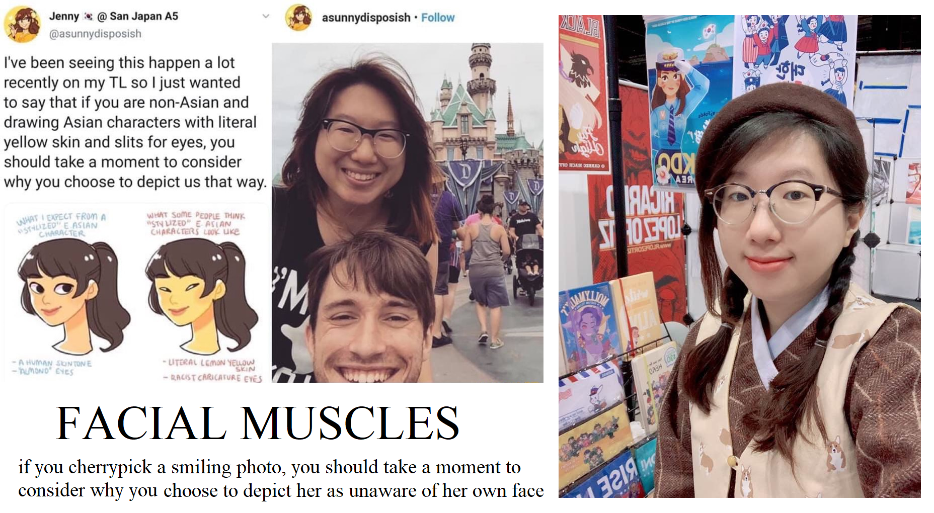 How do you design Asians which are recognizable as Asian without risking being accused of racism?Seems to me that if you draw them too recognizable, they come across as racial caricatures.If you try to avoid that, they tend to look like white people. For example, this is Keiko from Midnight Patrol. I didn't actually know she was a Asian until I heard her name.With black characters this isn't an issue because they're literally a different color than whites, but Asian can be white in color too.