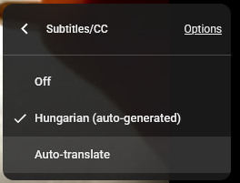 click settings > click subtitles > click Hungarian (auto-generated) > click subtitles again > click Auto-translate > find and click English