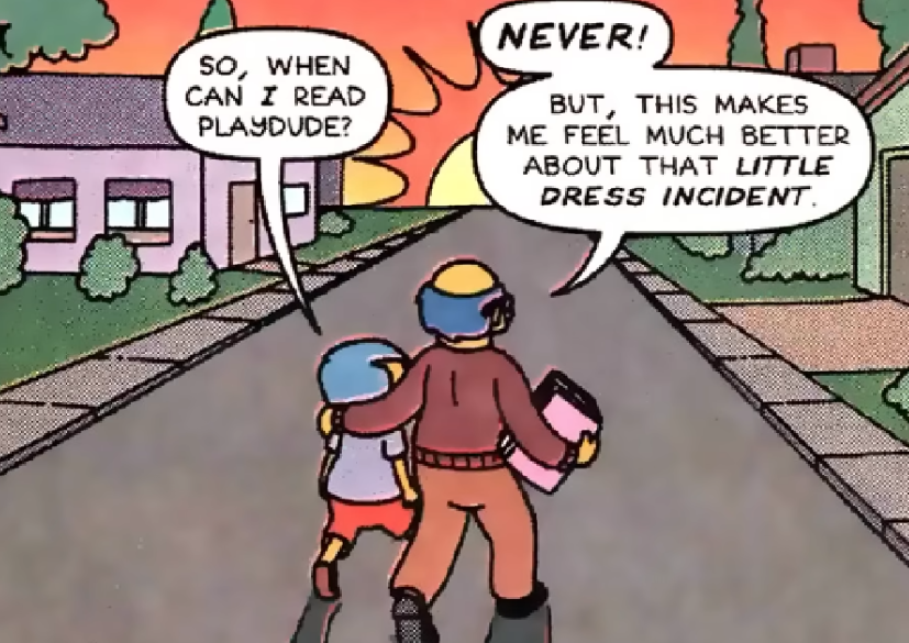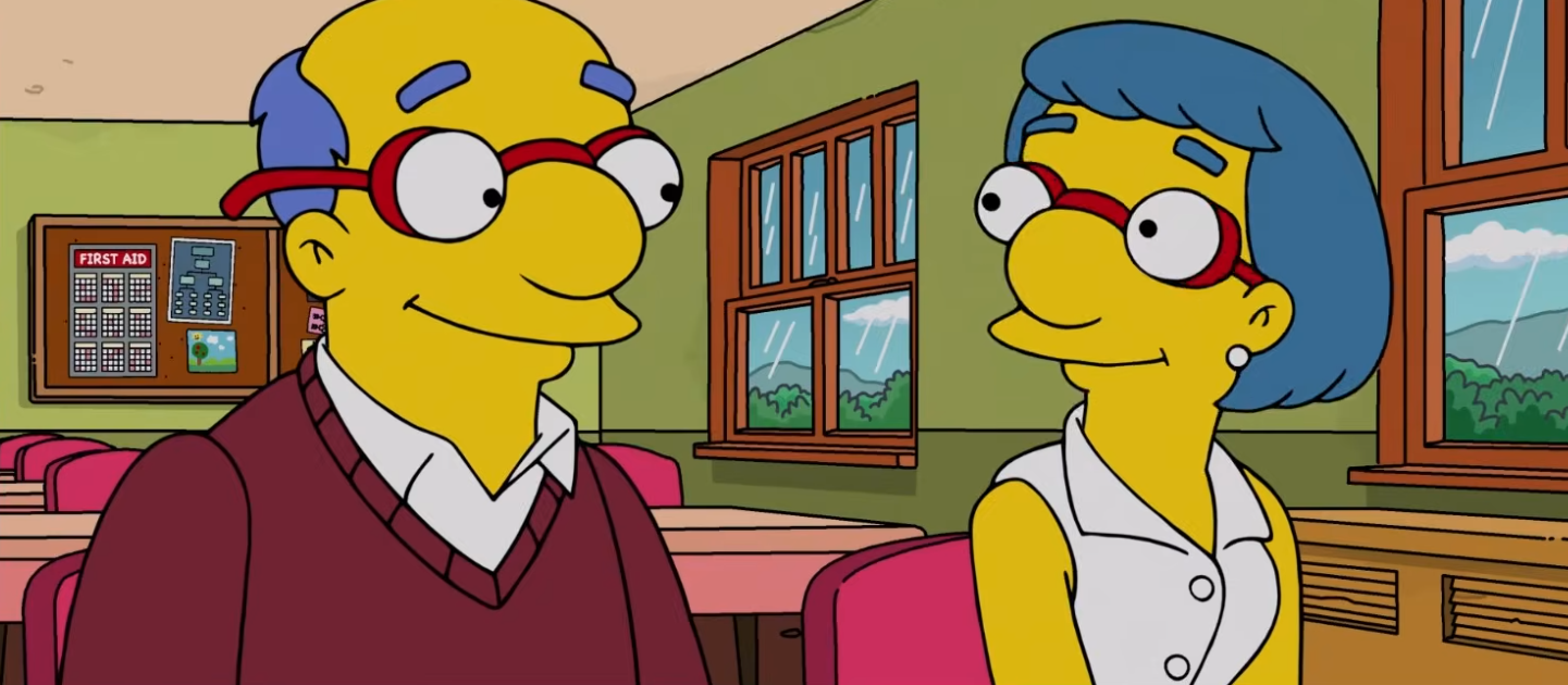 >"Did you hear that Luann?, females!"Kirk saying this after hearing that Milhouse is practicing kissing girls with photos of themDid they just say that Milhouse's parents are homophobic in the year 2026?