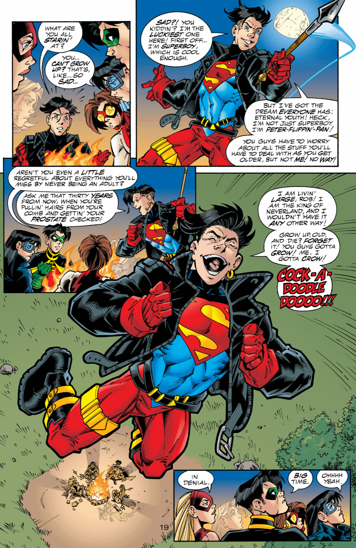 >>152329380Thats the one saving grace of Jon, a character that shouldn't even exist. He took bullet/fag cock that was aimed at Kon thereby saving a much better character.>>152330512I honestly like the t-shirt and jeans look better, the 90's look was really dated even back then. The one thing about supermans outfit is that it's timeless, Kon needs something like that.I always wished they gave him a letterman jacket and styled him like a highschool quarterback, it would be fitting given that Kara is meant to look like a cheerleader.